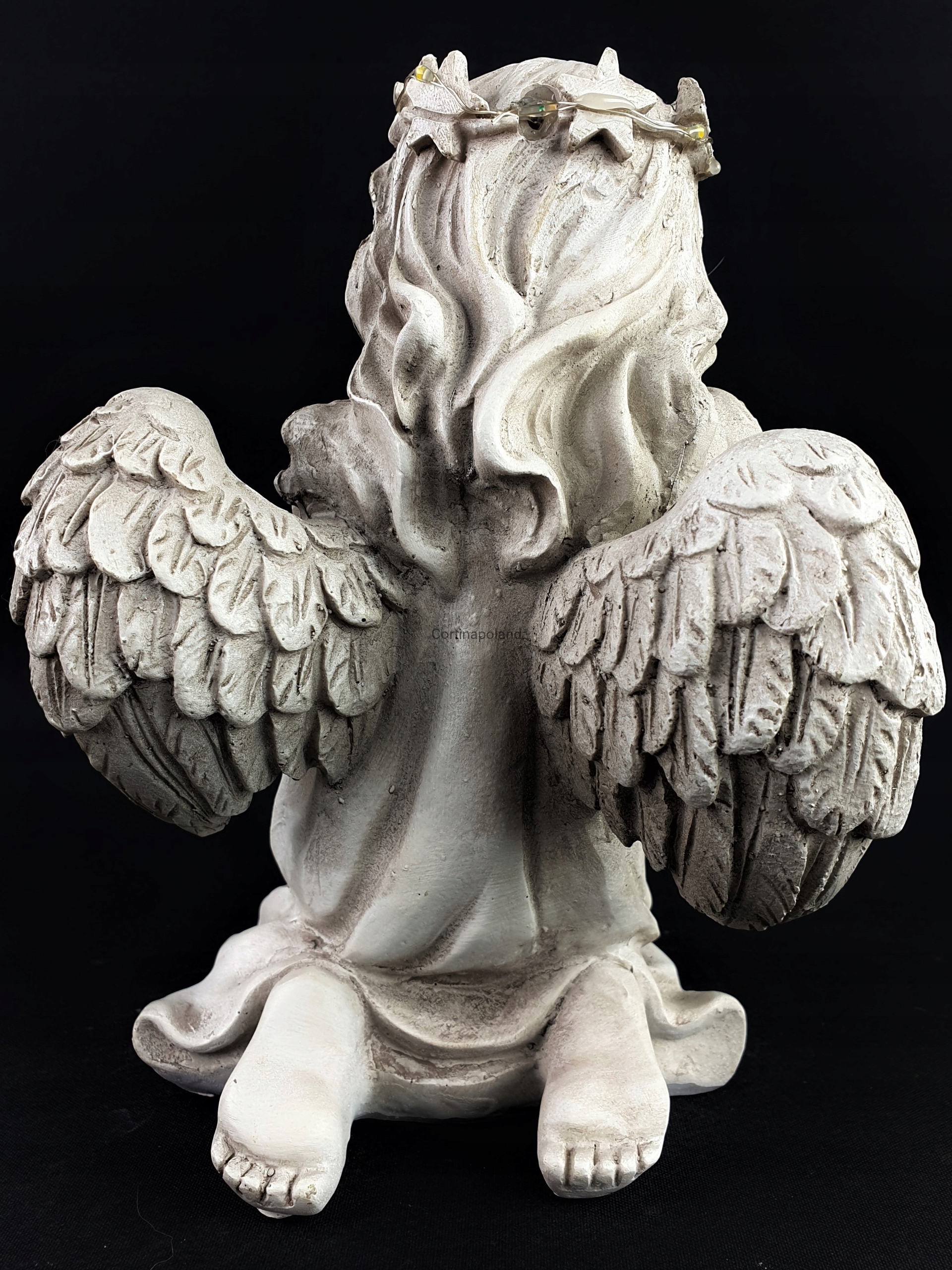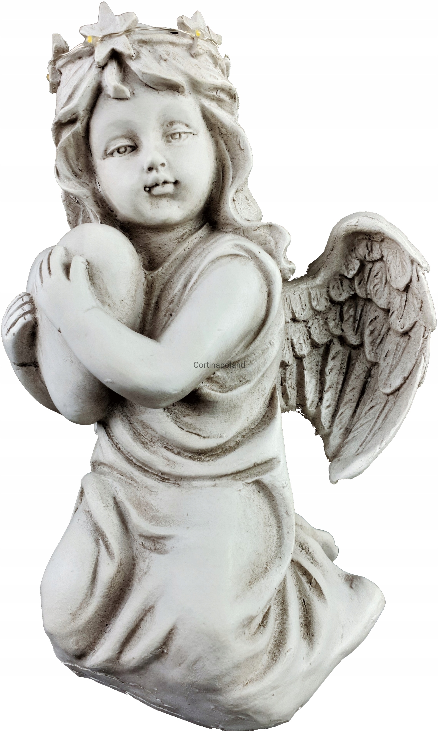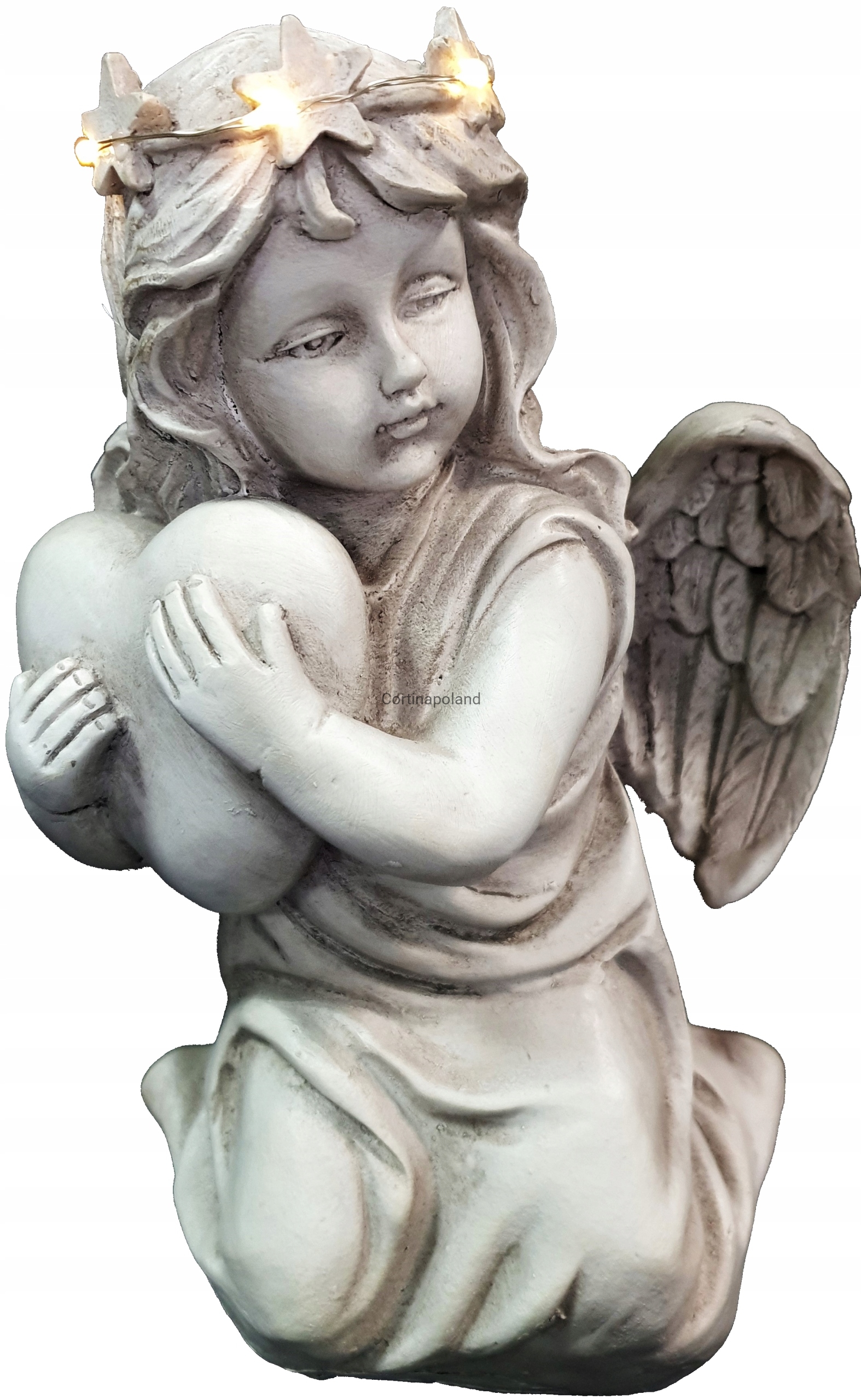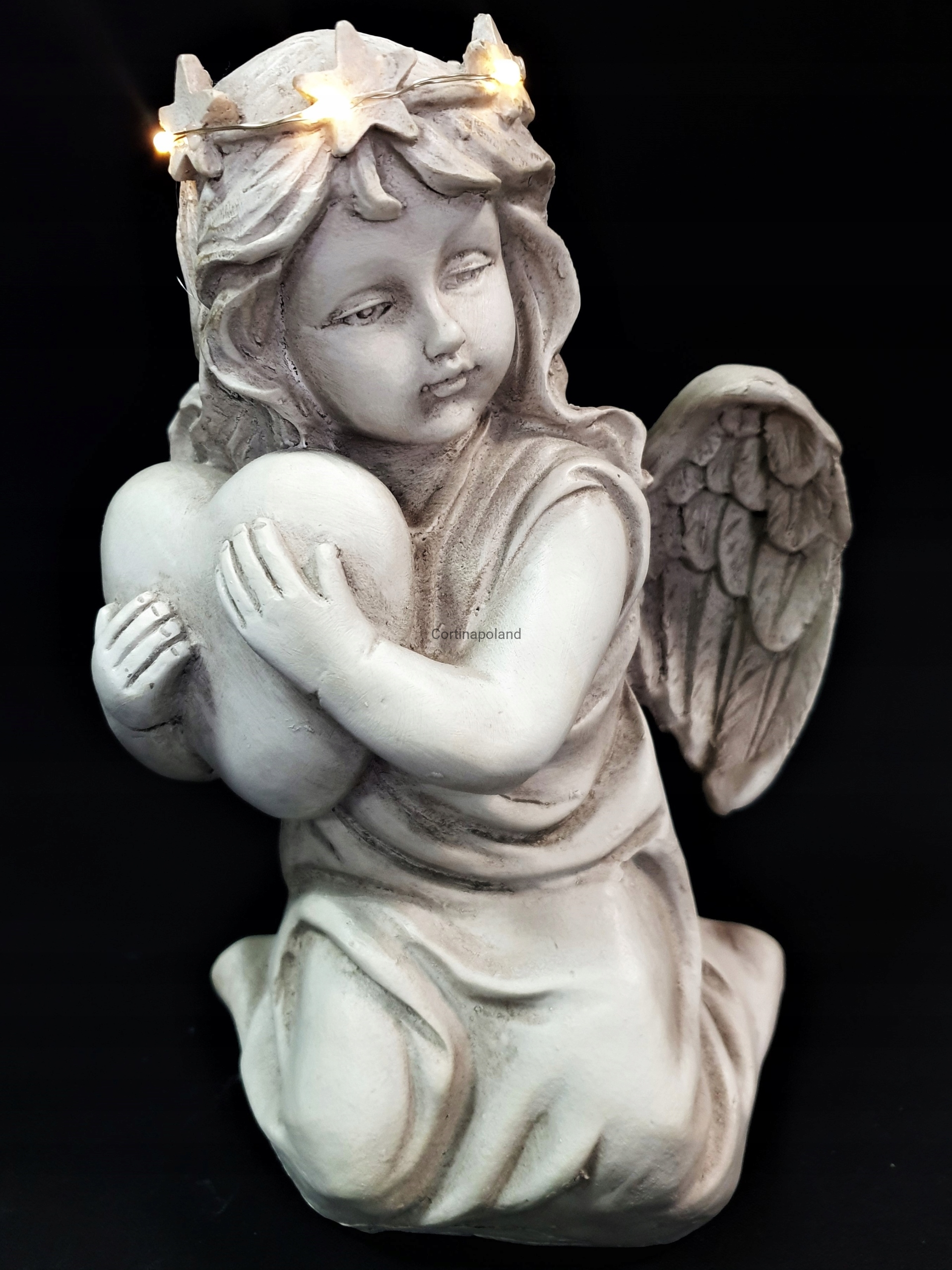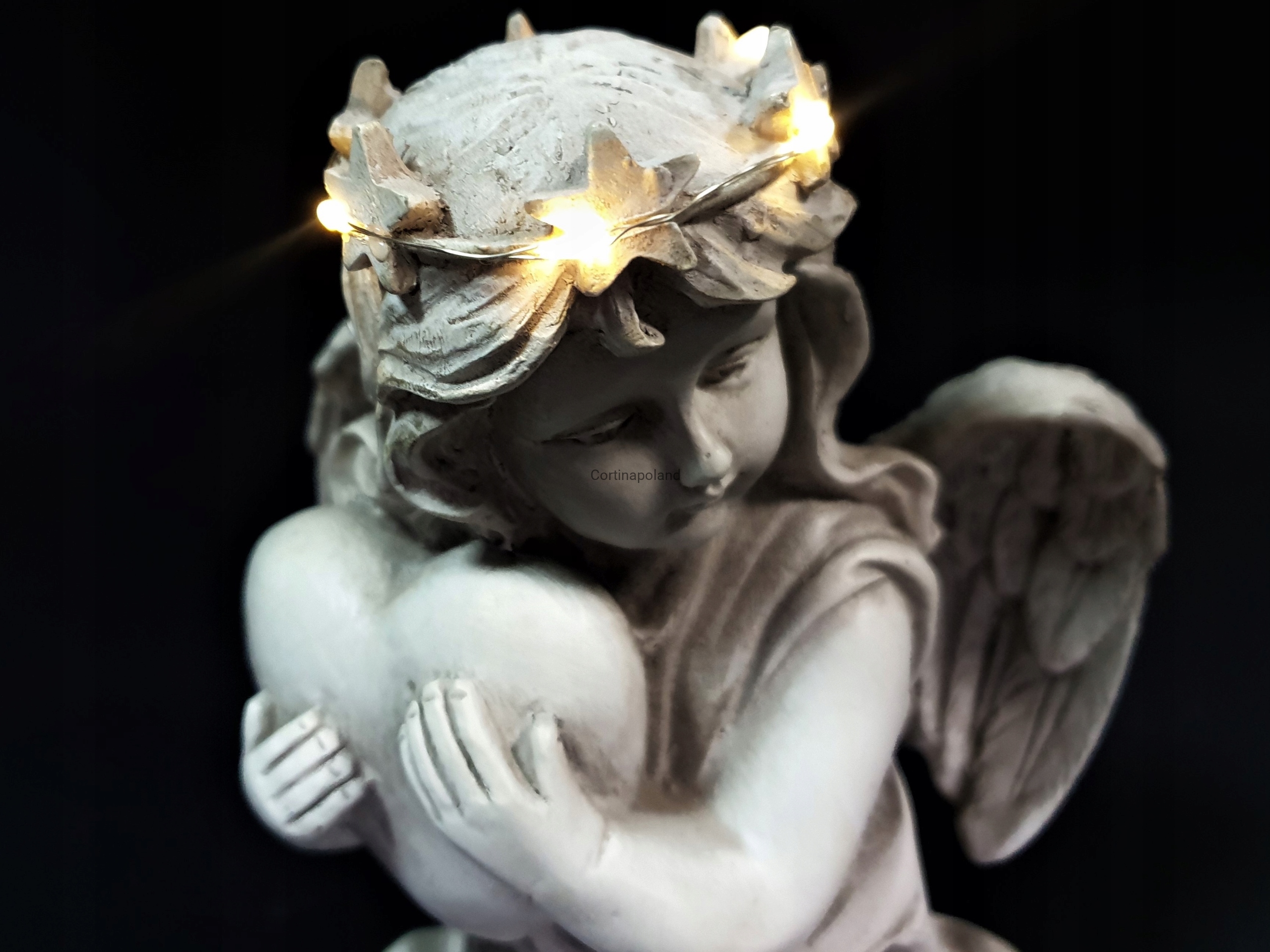Dzięki zastosowaniu energooszczędnej diody Led jako źródło światła prezentuje niesamowity efekt oświetlając postać Aniołka w kolorze ciepłym białym .