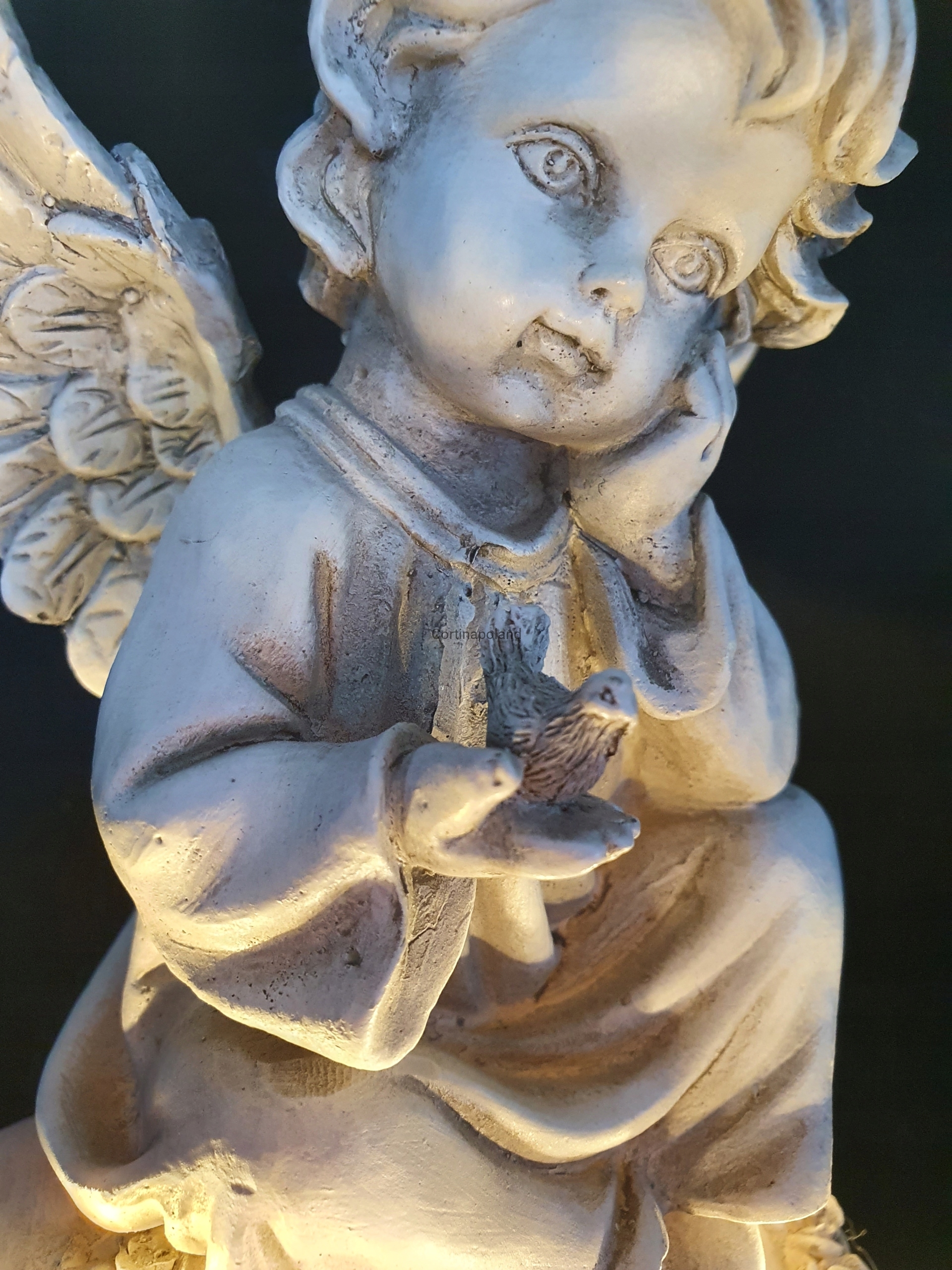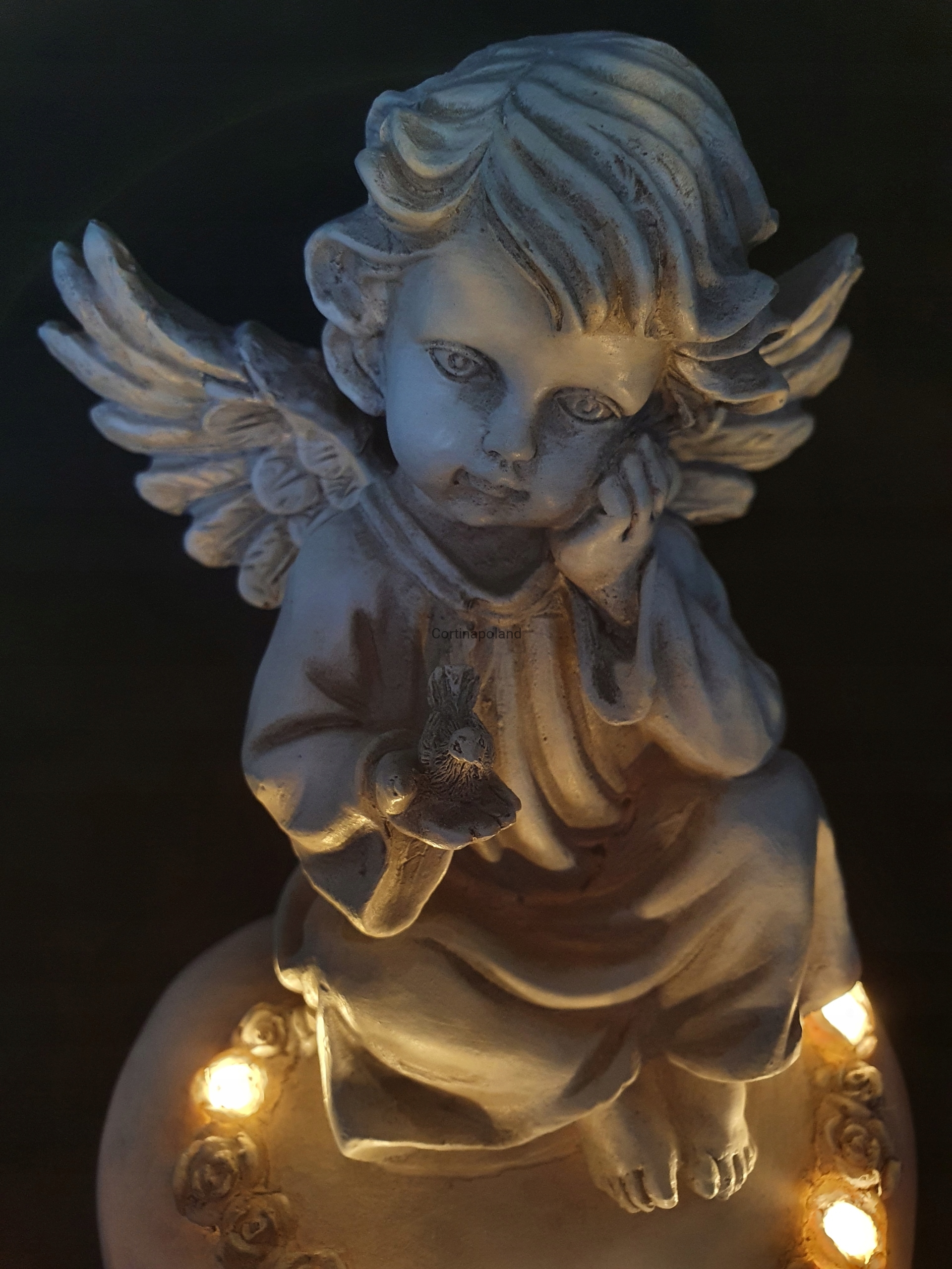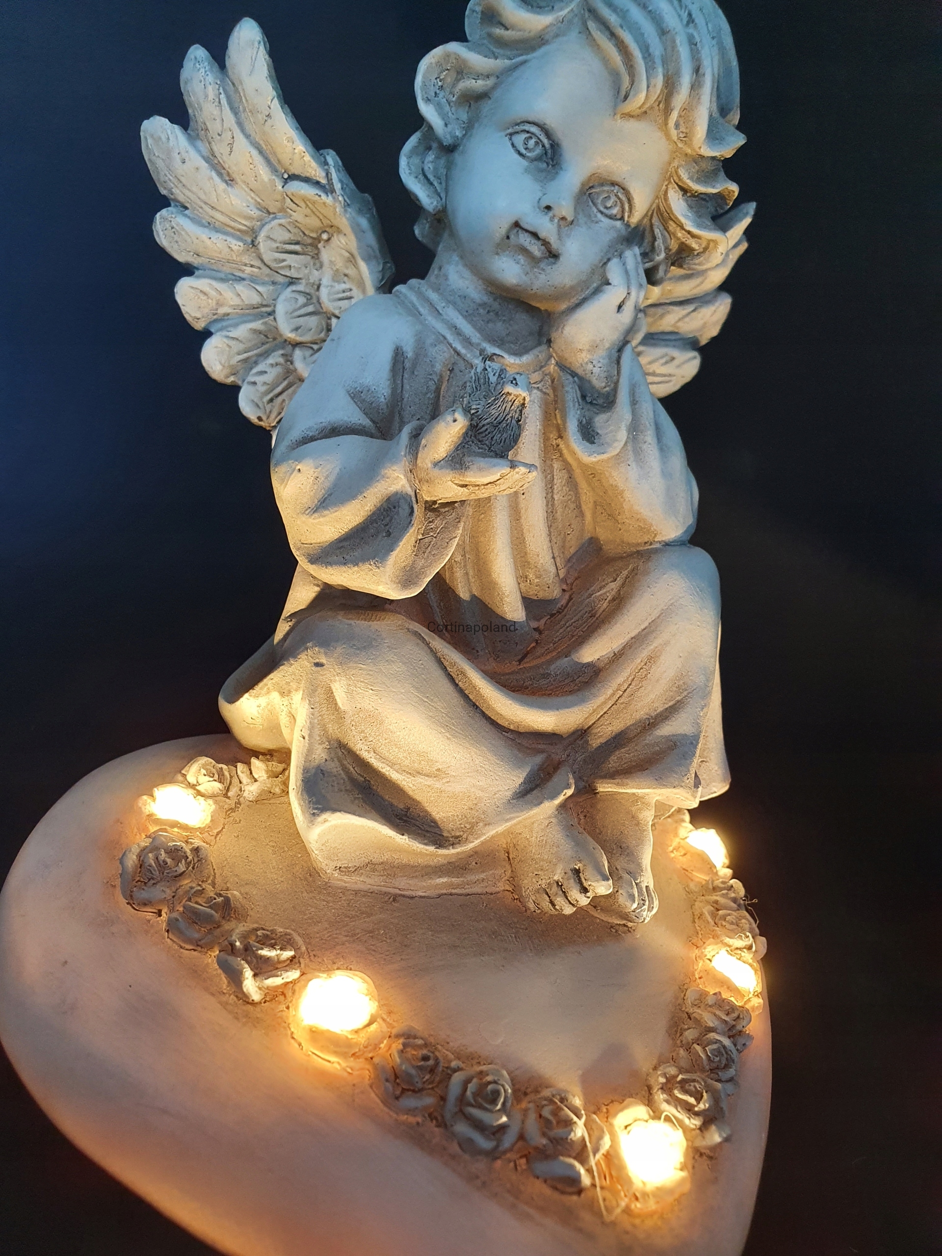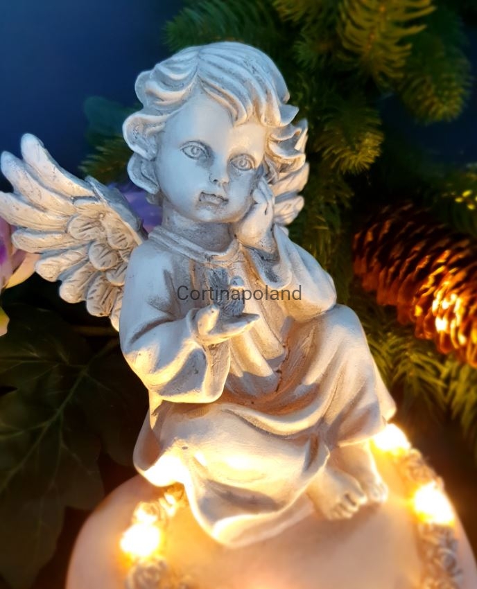 Dzięki zastosowaniu energooszczędnej diody Led jako źródło światła prezentuje niesamowity efekt oświetlając postać Aniołka w kolorze ciepłym białym .