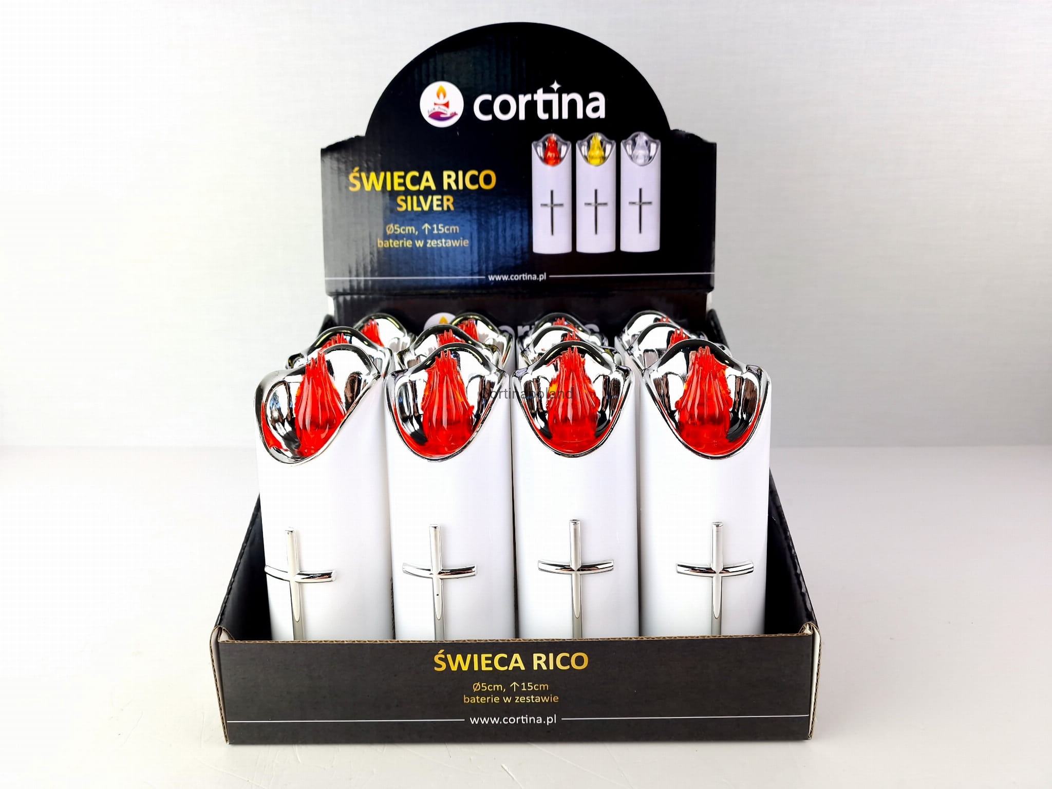 Biała świeca LED 15 cm – wkład do zniczy, ekologiczna z bateriami RICO
