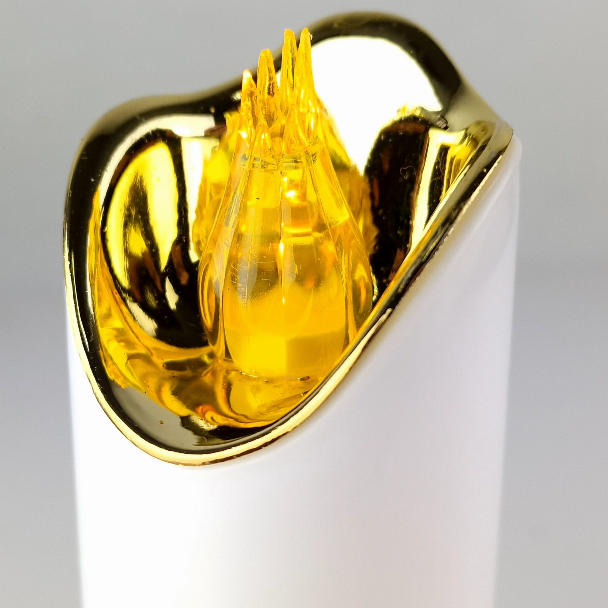 ✅ Świeca ma płomień, wykonany z tworzywa sztucznego w kolorze żółtym.