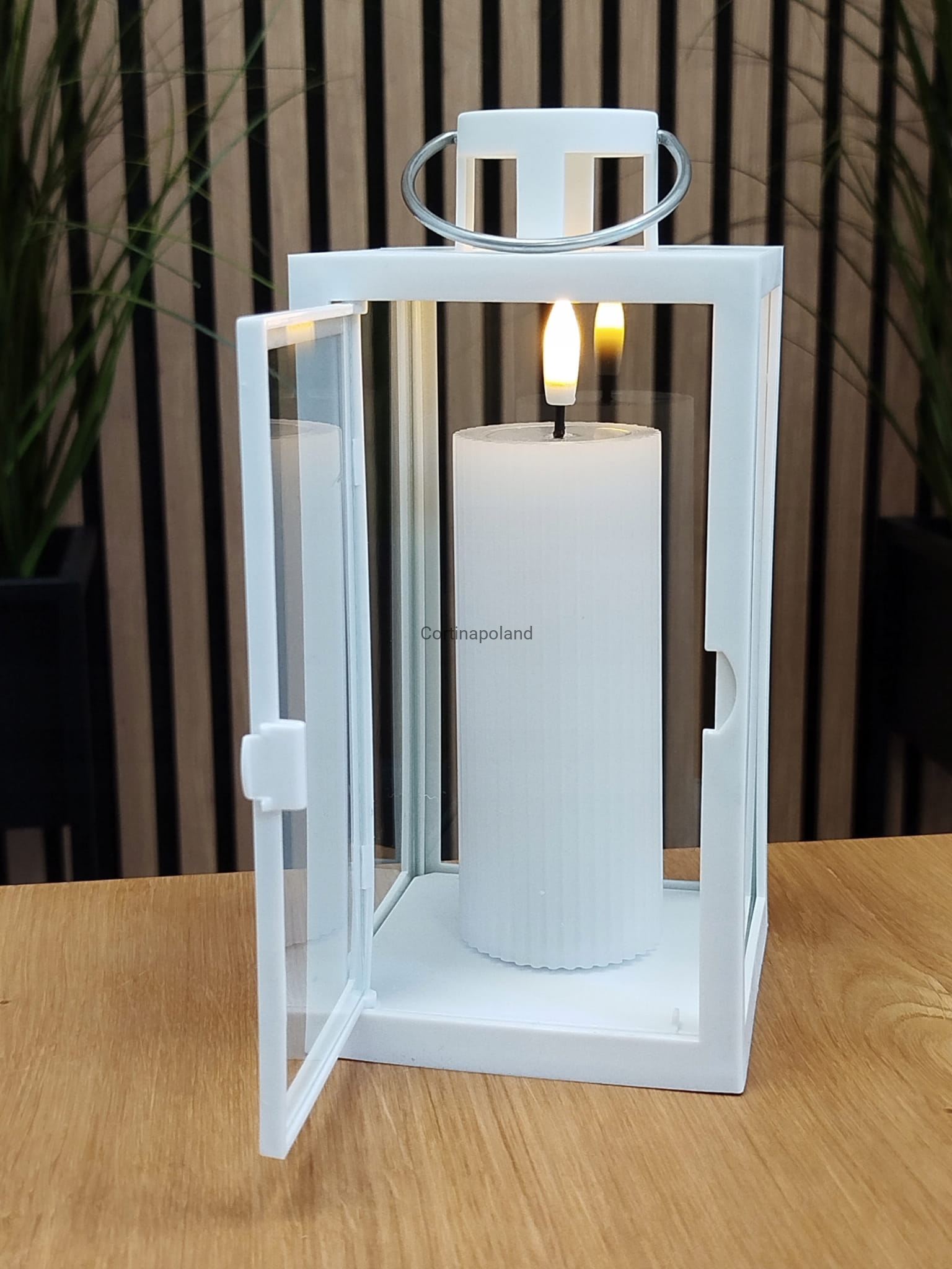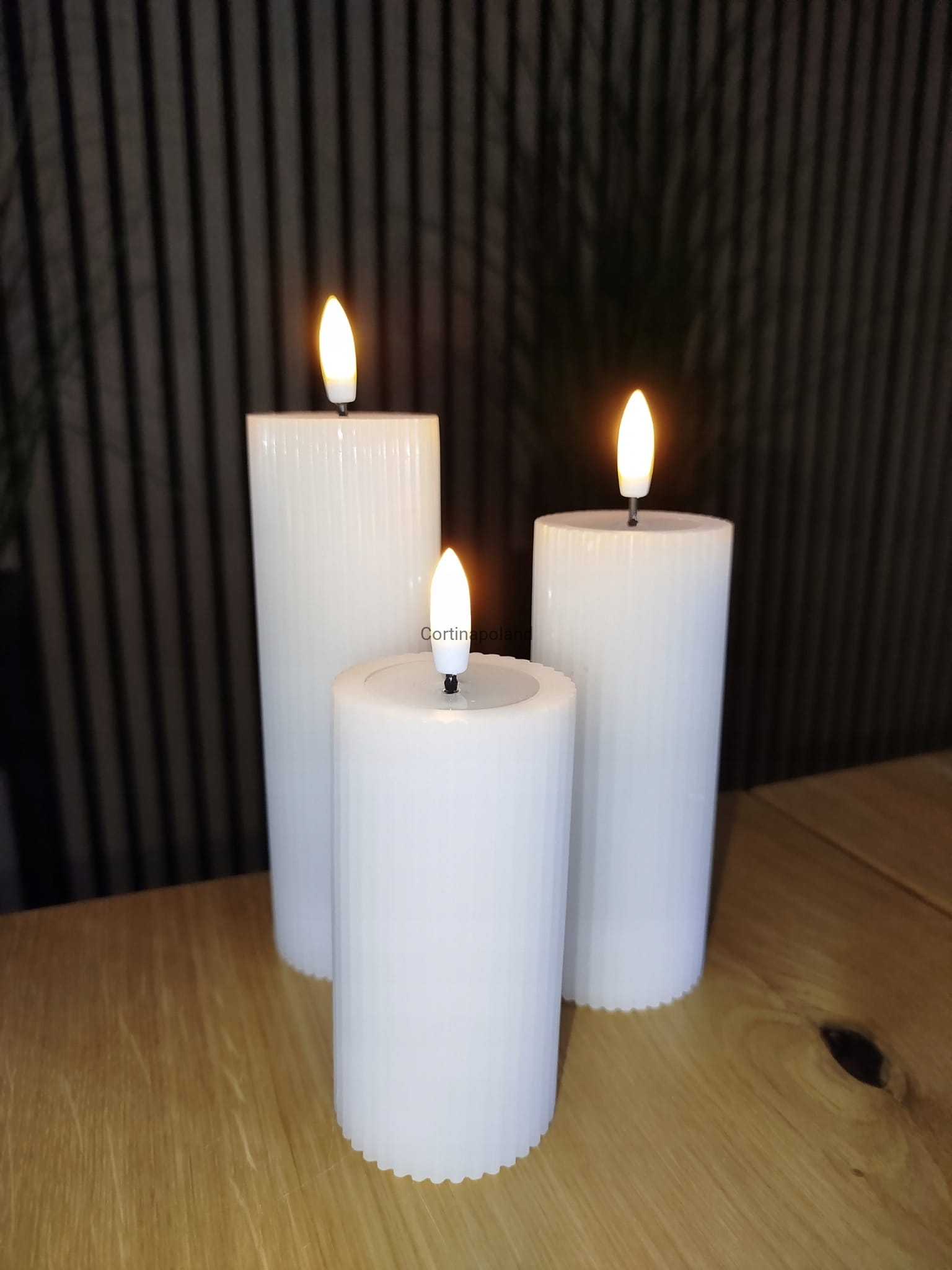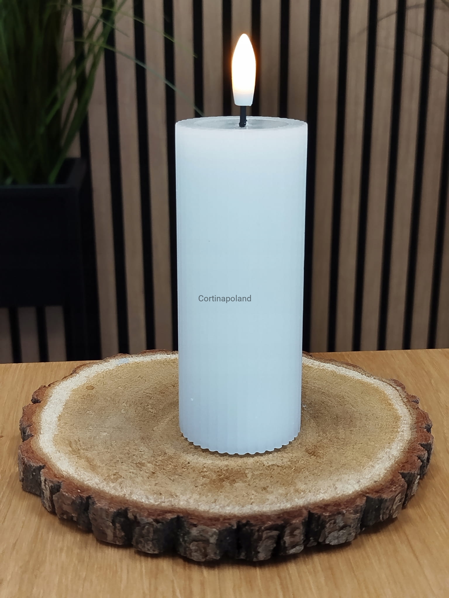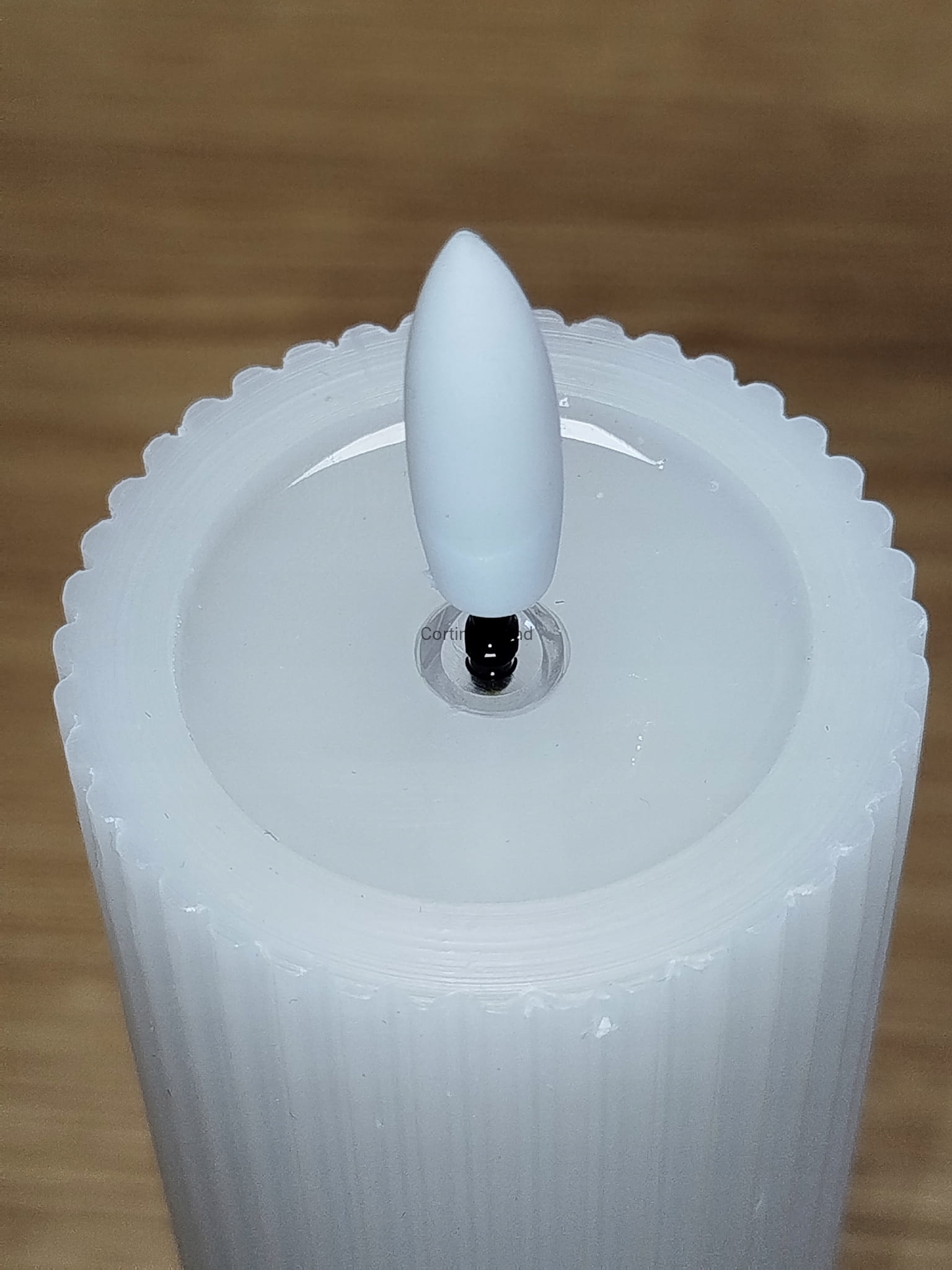 Biała świeca woskowa LED karbowana z efektem płomienia na baterie 12,5 cm x 5 cm