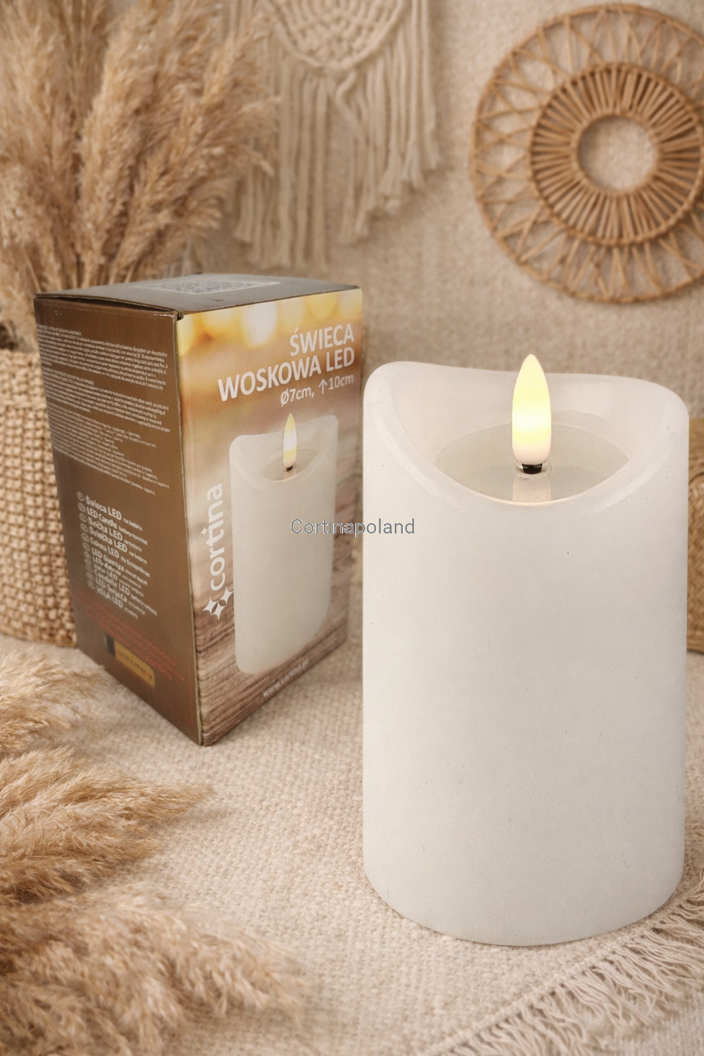 Biała świeca woskowa LED z efektem płomienia na baterie 10 cm x 7 cm