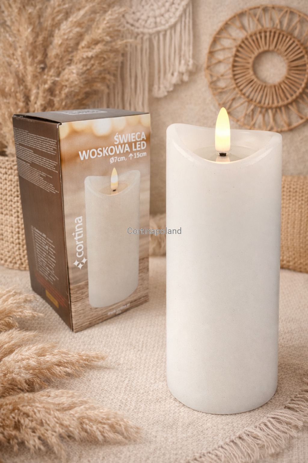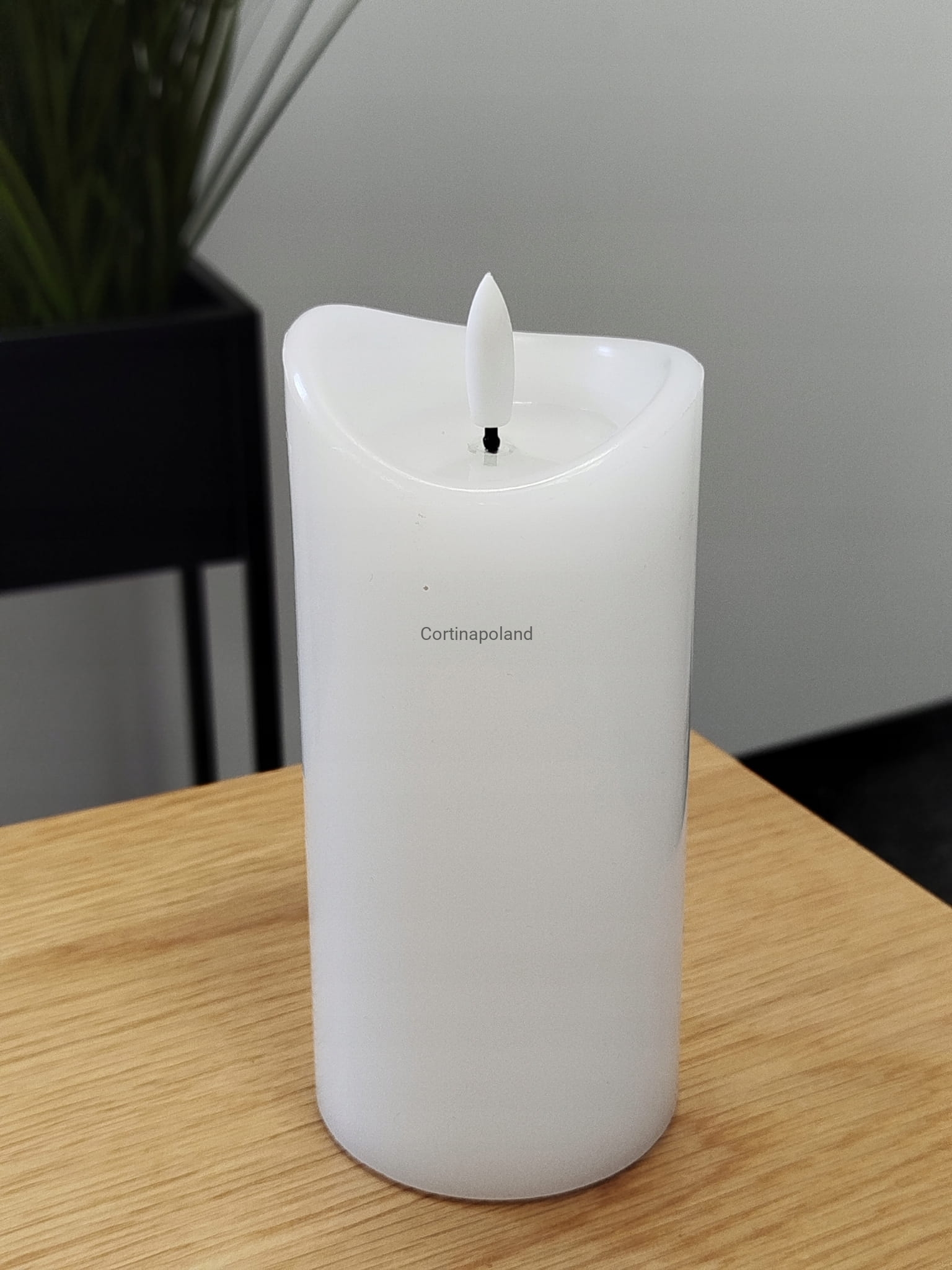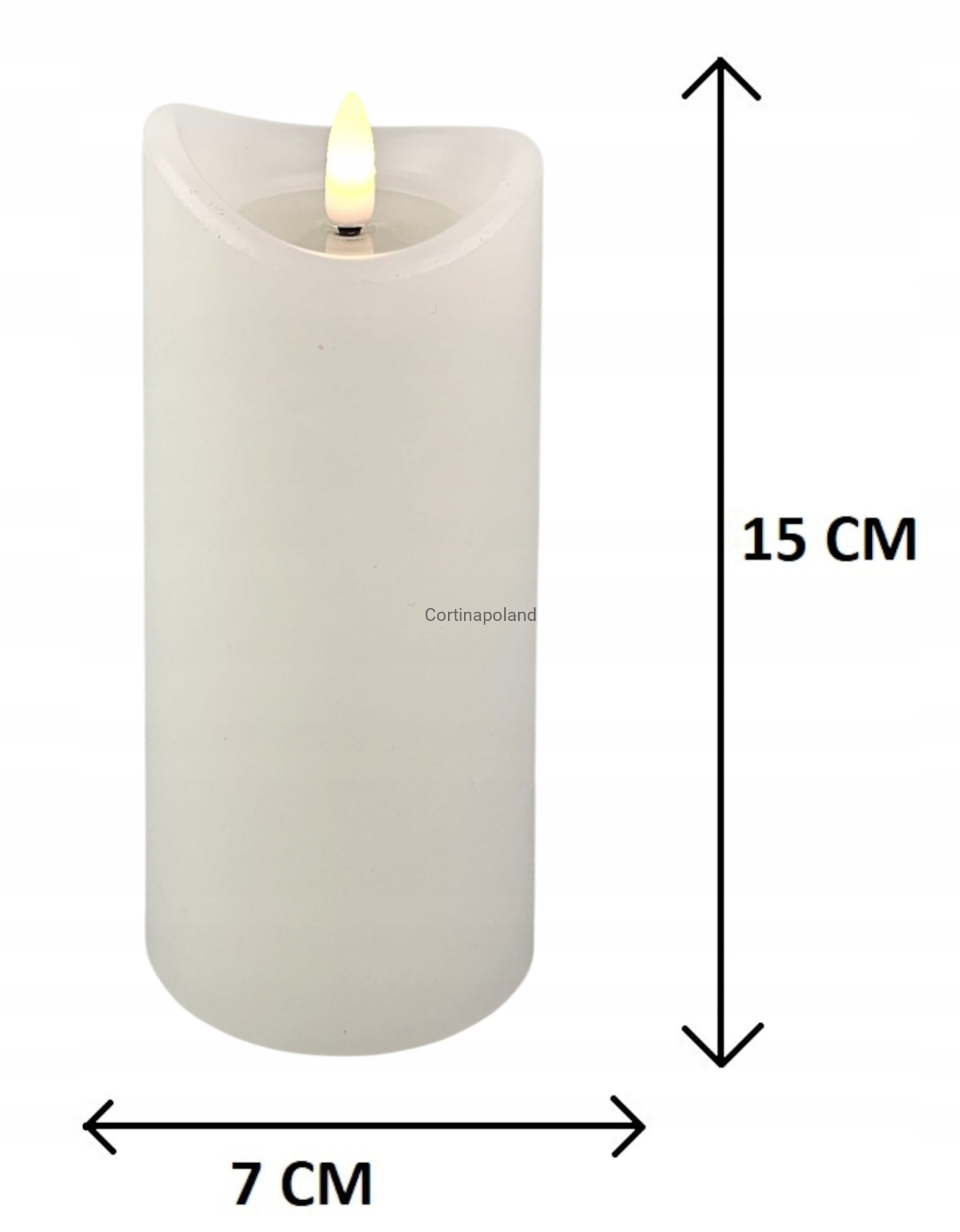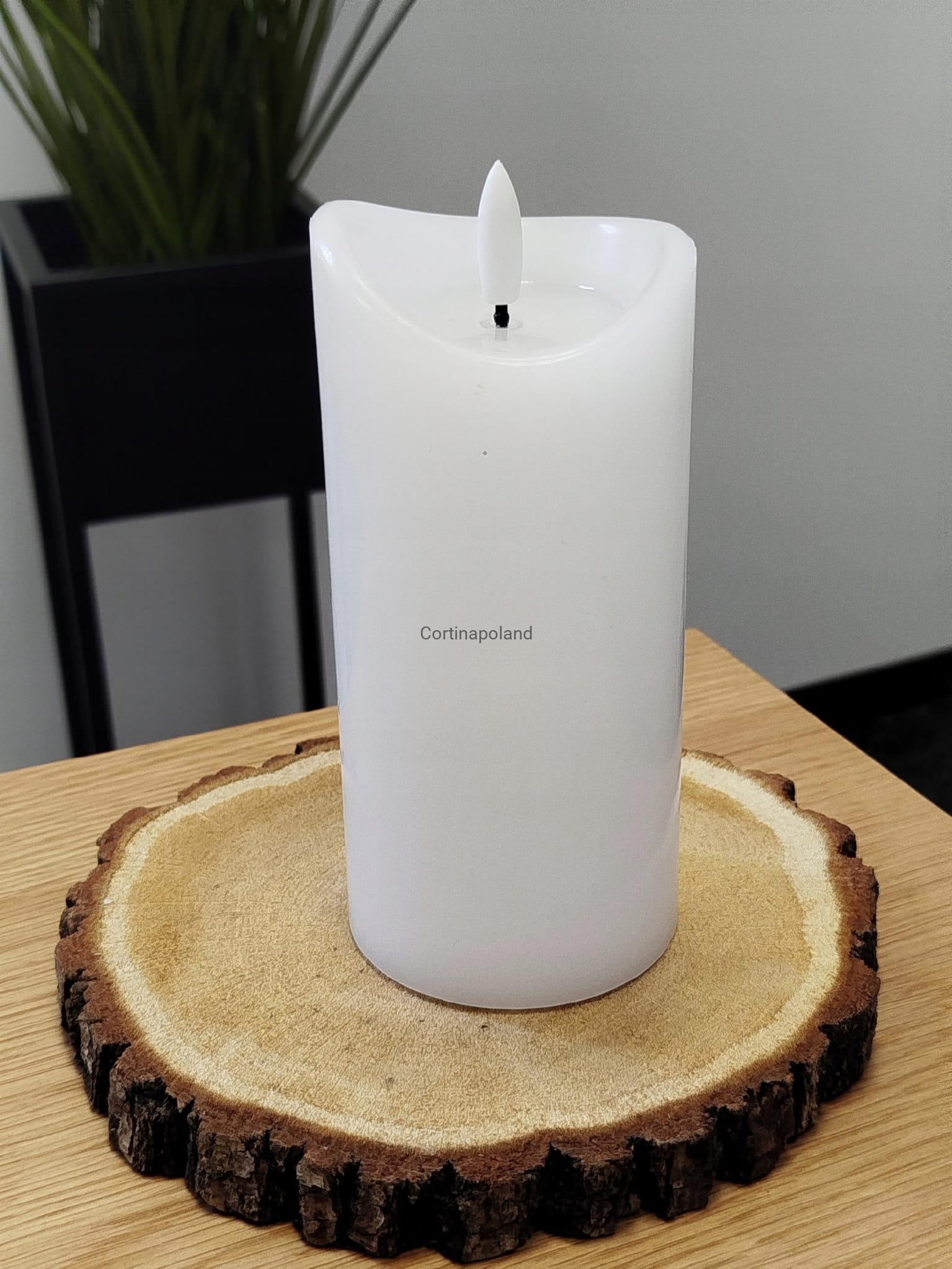 Biała świeca woskowa led z efektem płomienia na baterie 15 cm x 7 cm