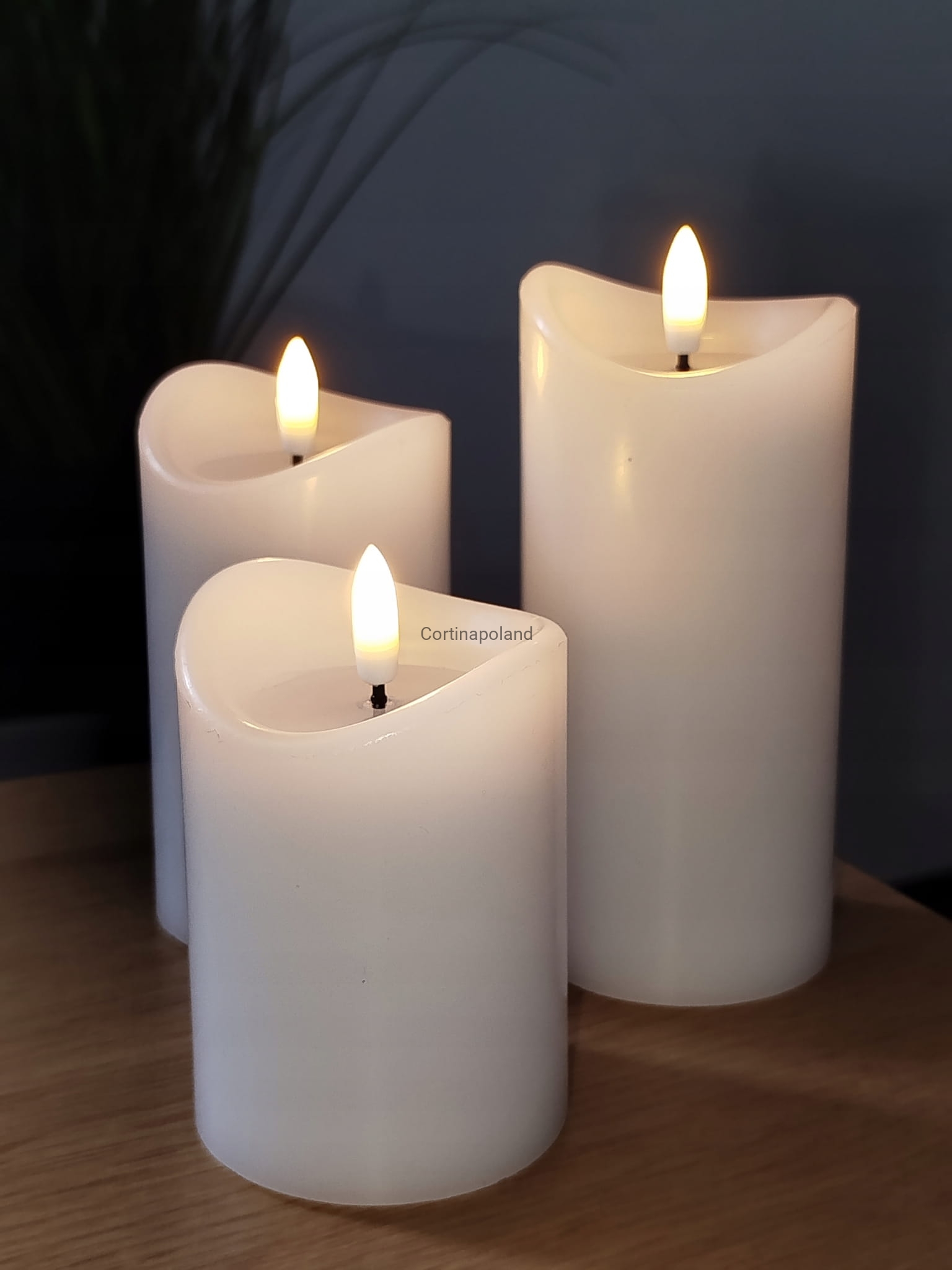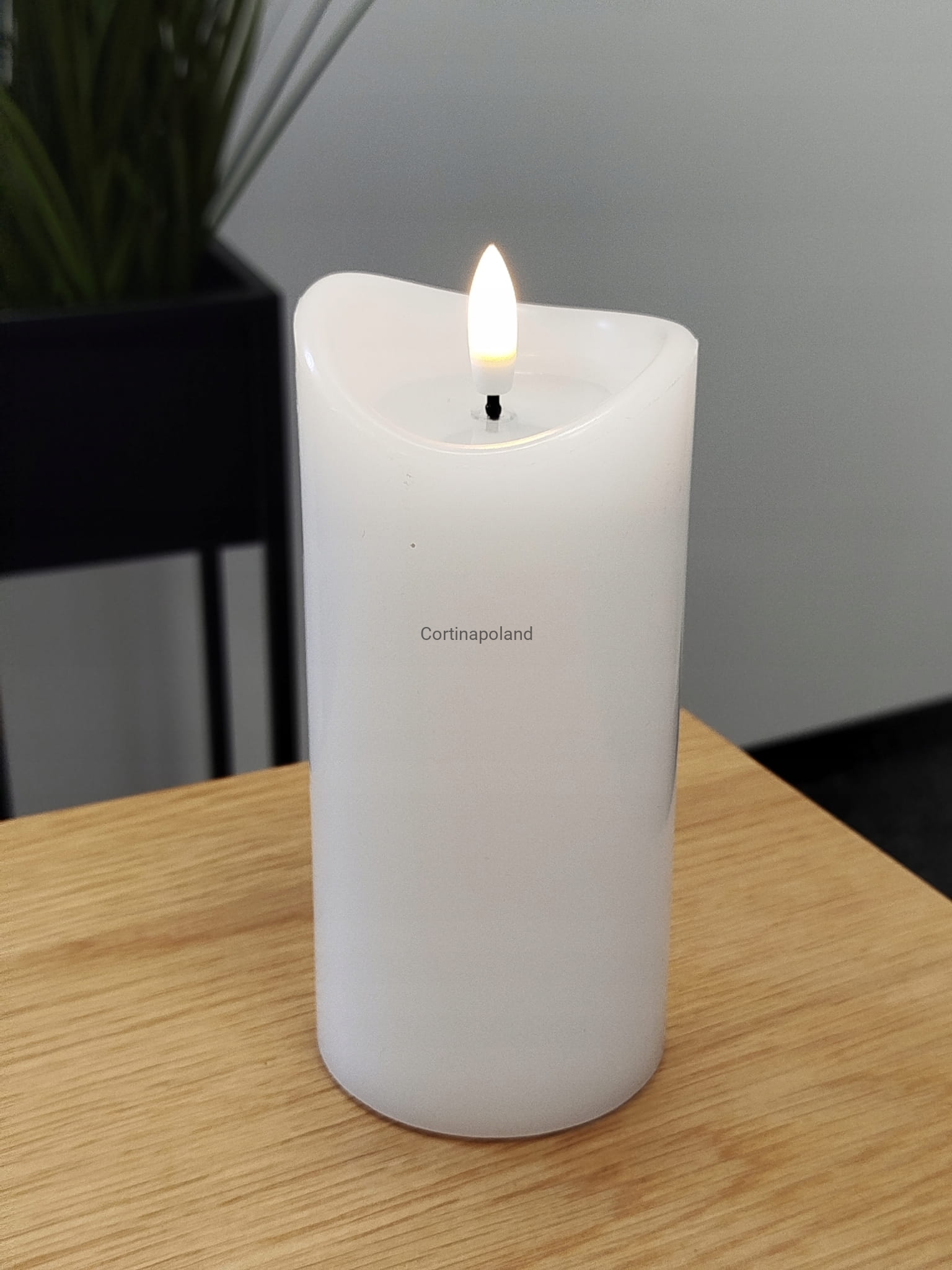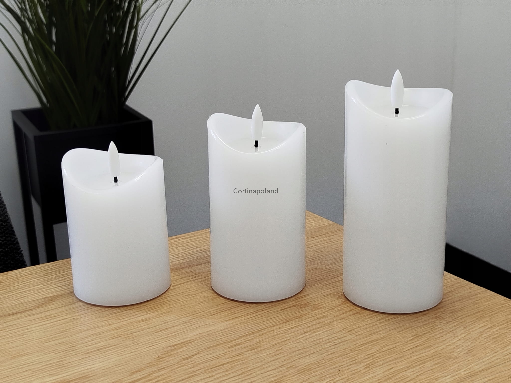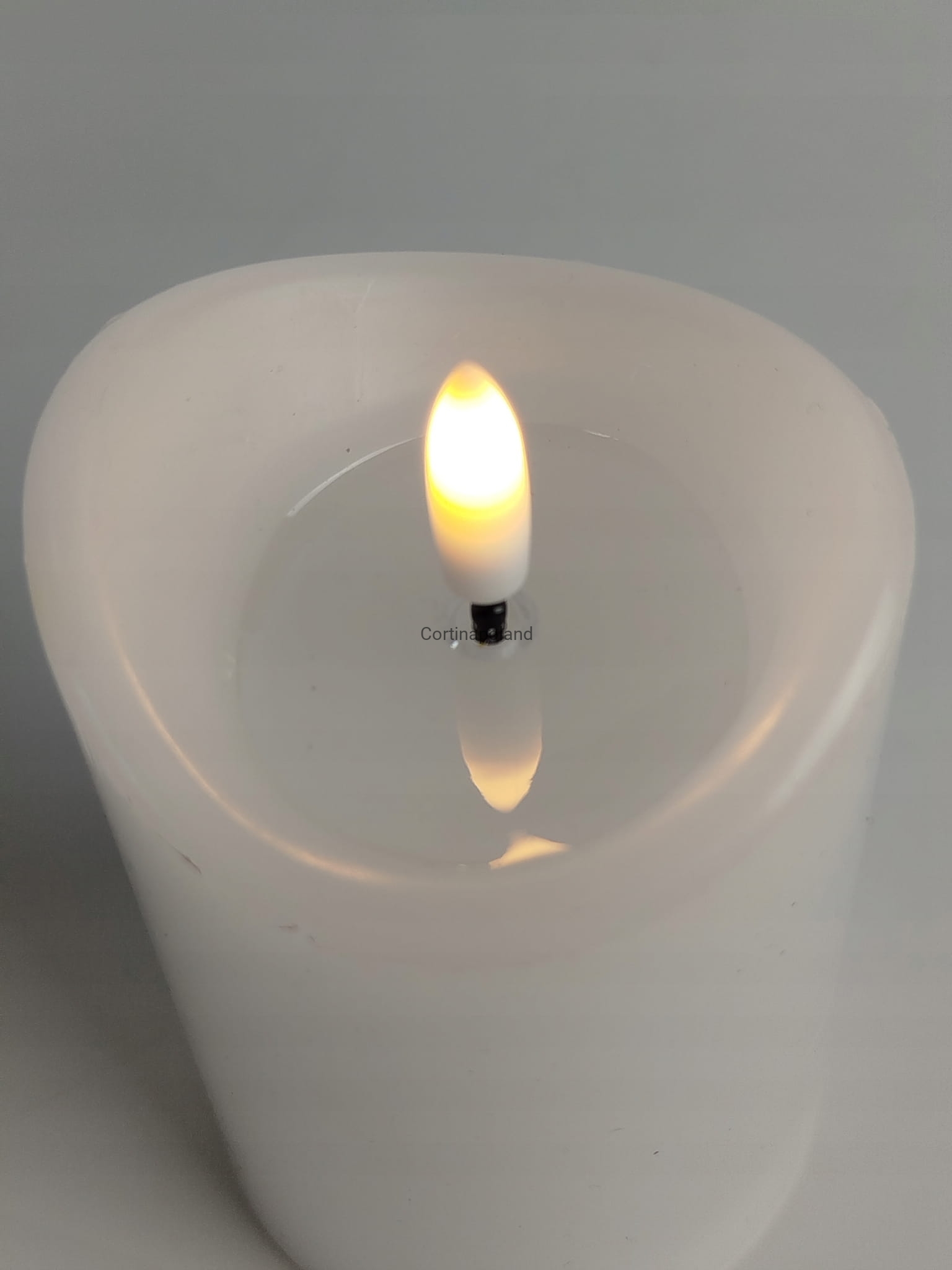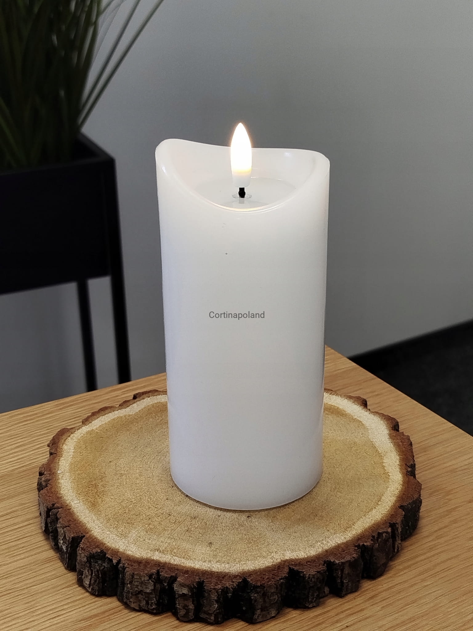 Biała świeca woskowa led z efektem płomienia na baterie 15 cm x 7 cm