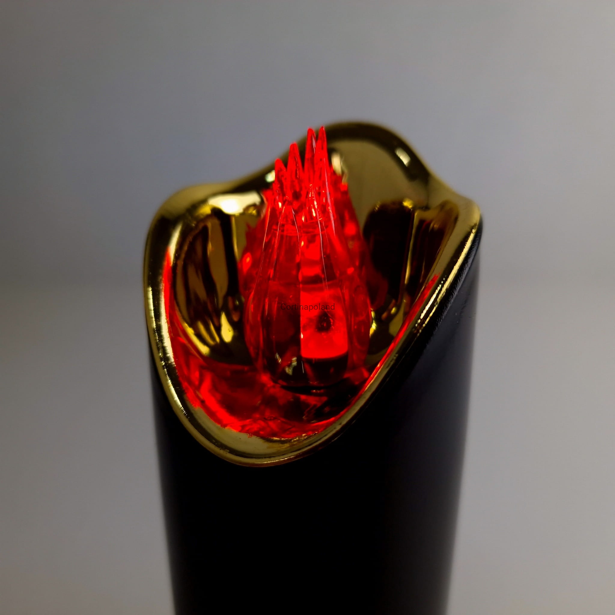 ✅ Świeca ma płomień, wykonany z tworzywa sztucznego w kolorze czerwonym.