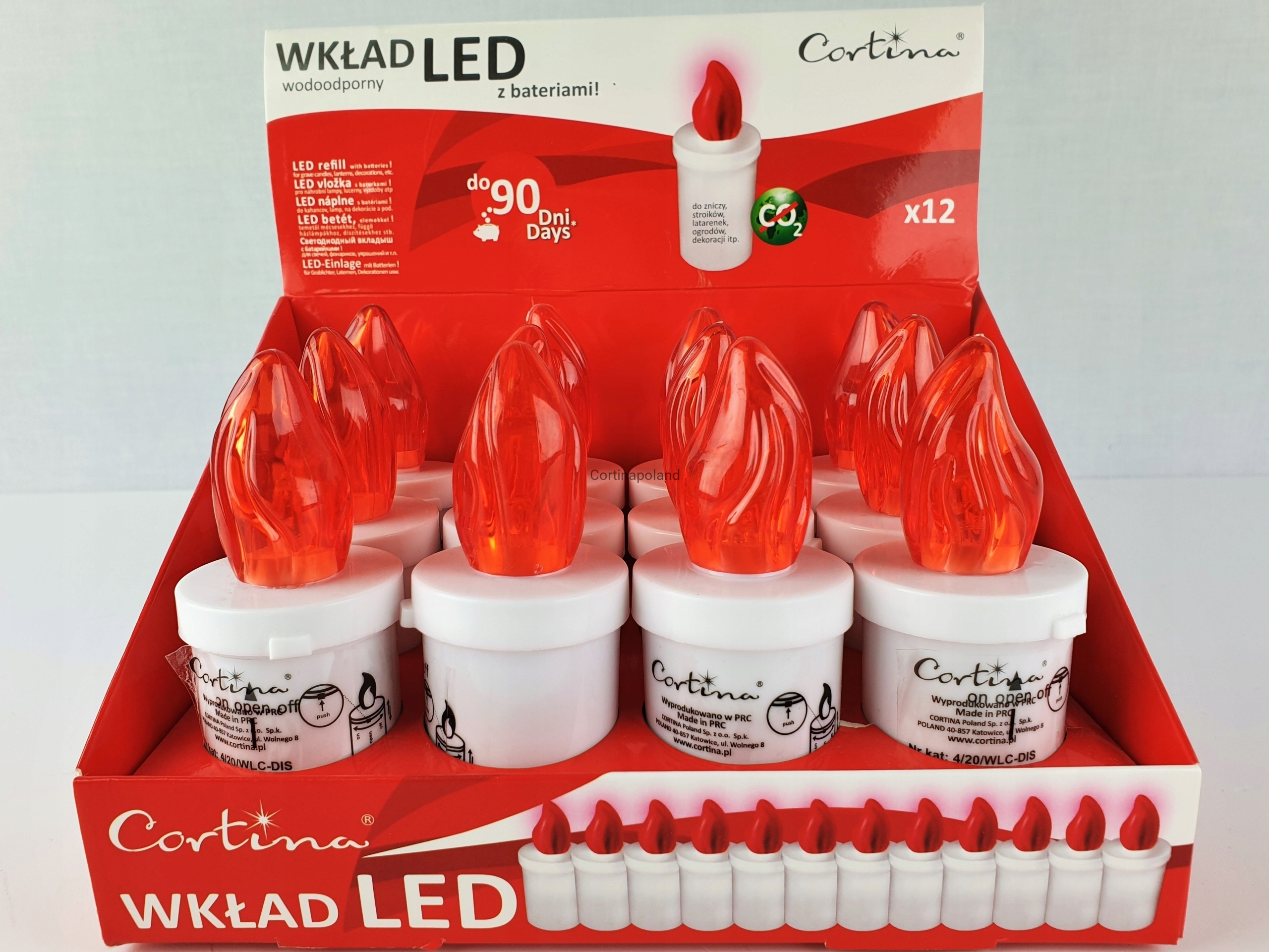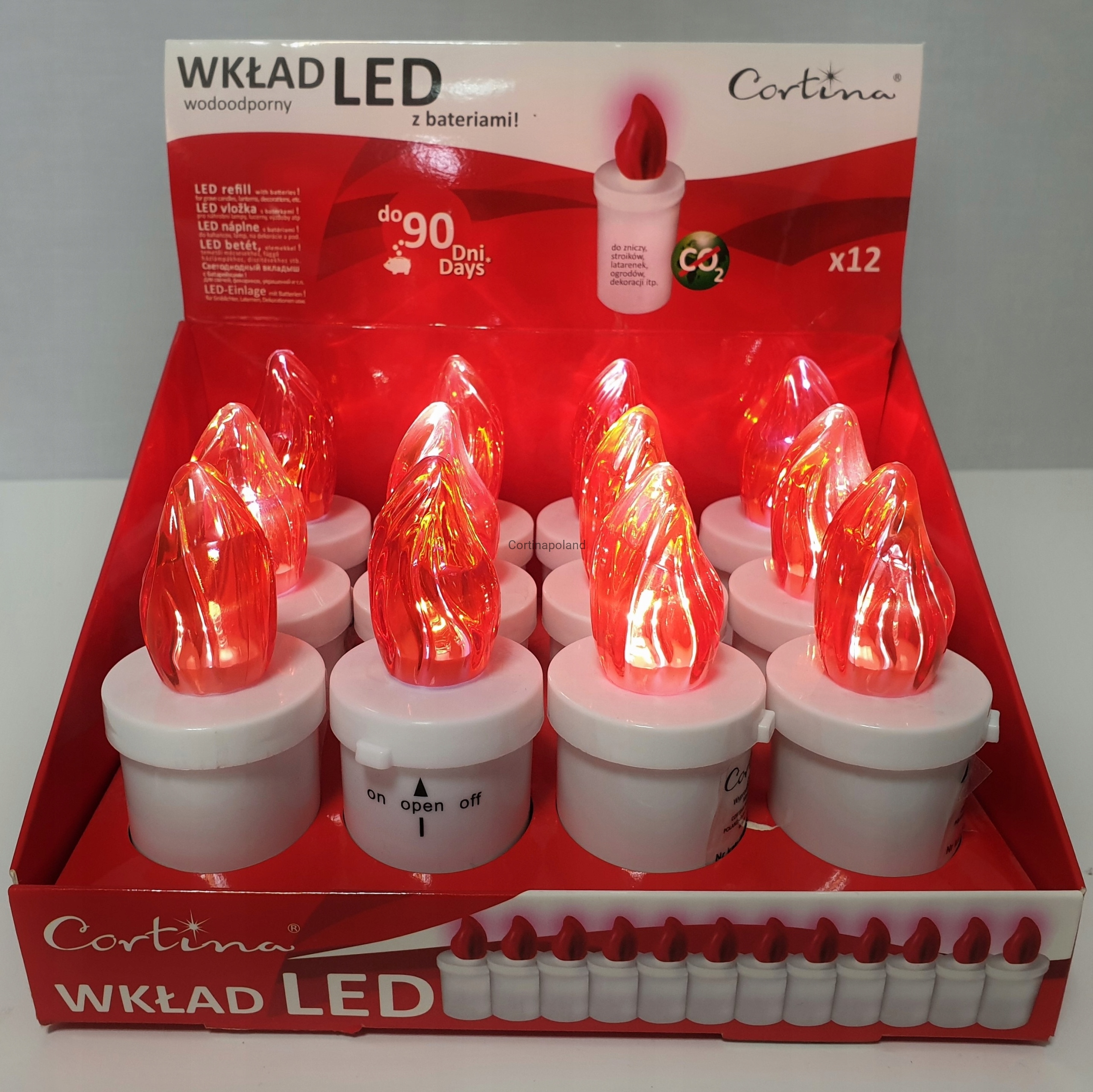 Czerwony wkład LED do zniczy – wodoodporny, długi czas świecenia, z bateriami MINOR