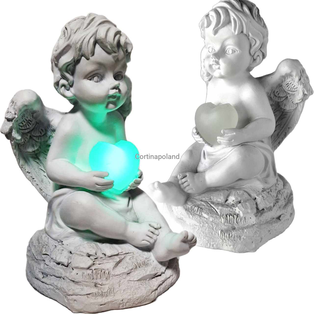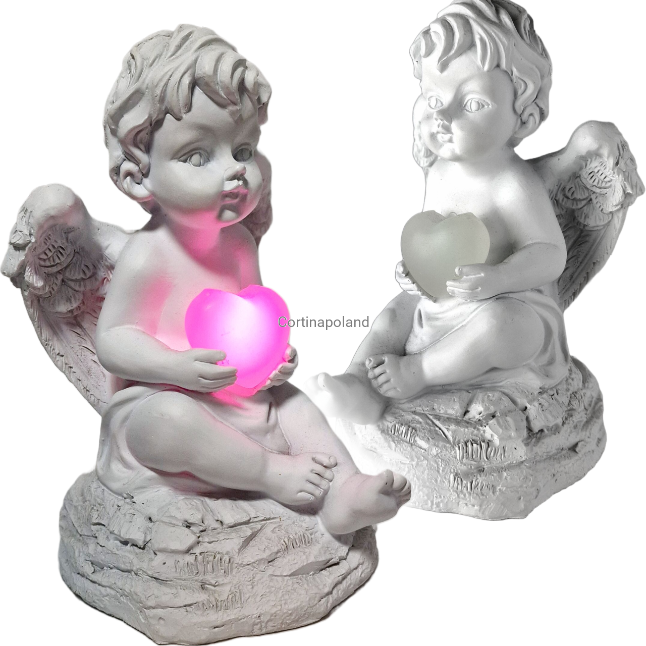 Figurka aniołek z sercem LED multicolor
