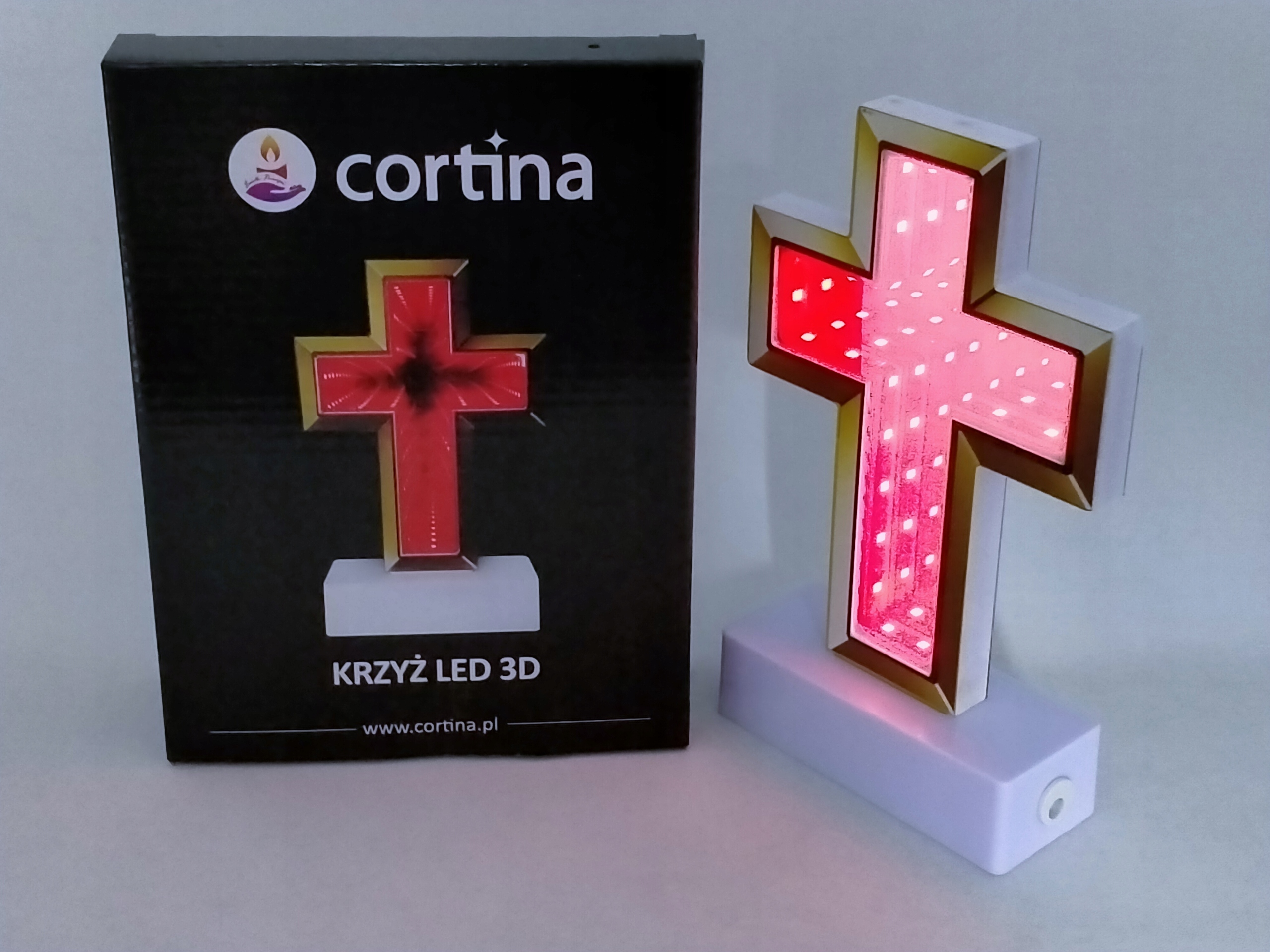 Krzyż LED wkład do zniczy 3D na baterie 20 cm
