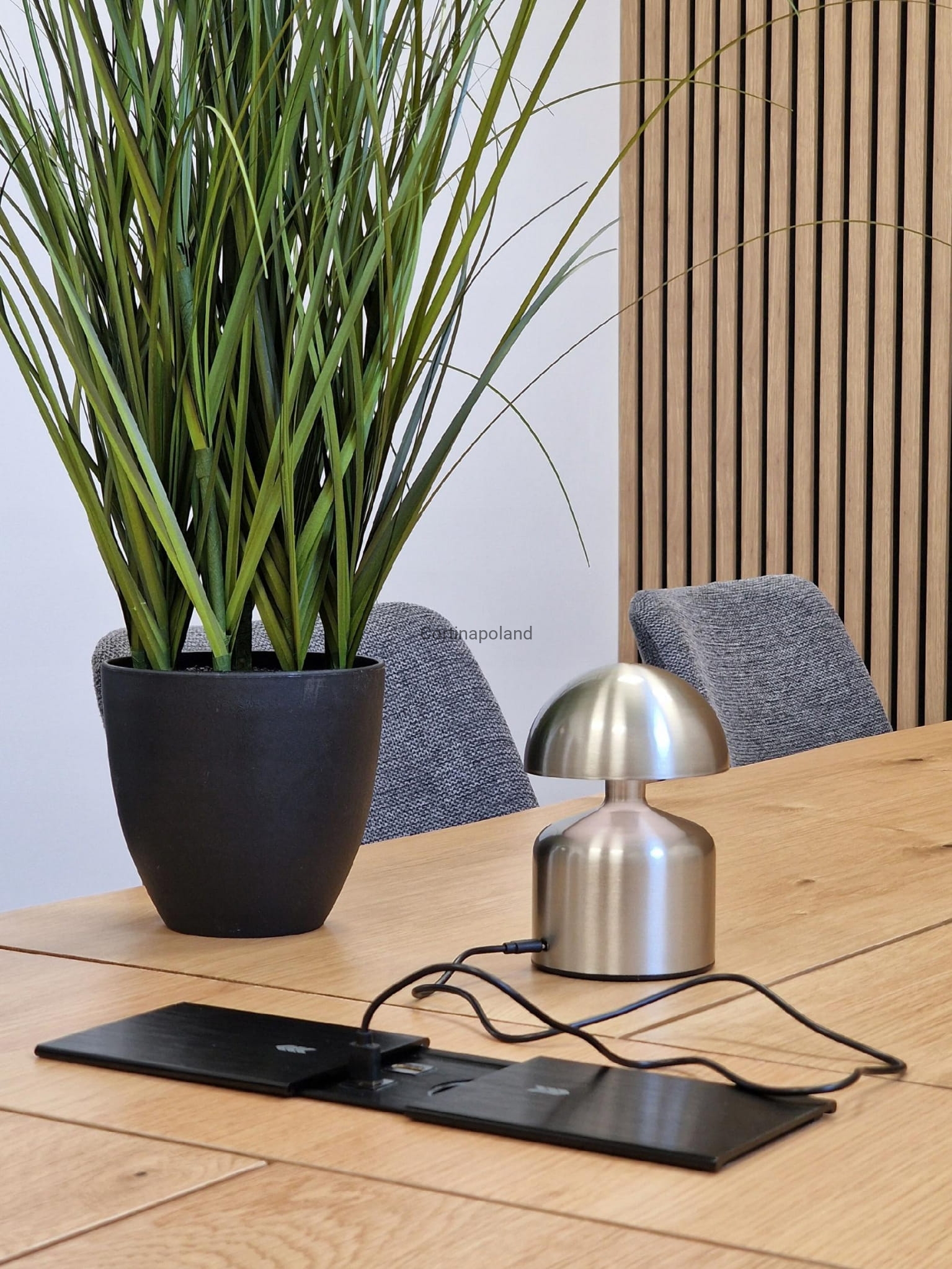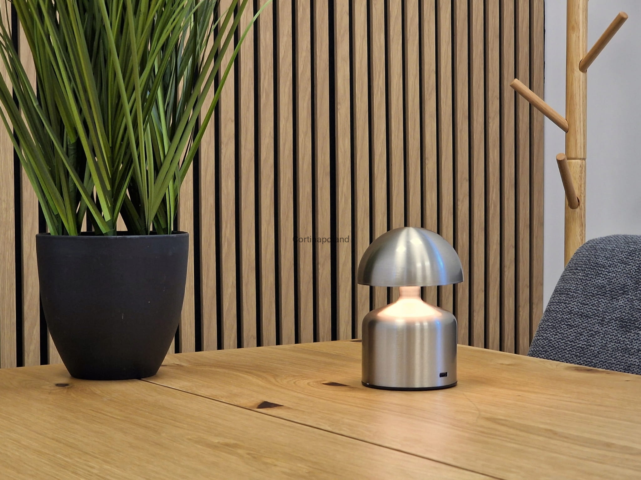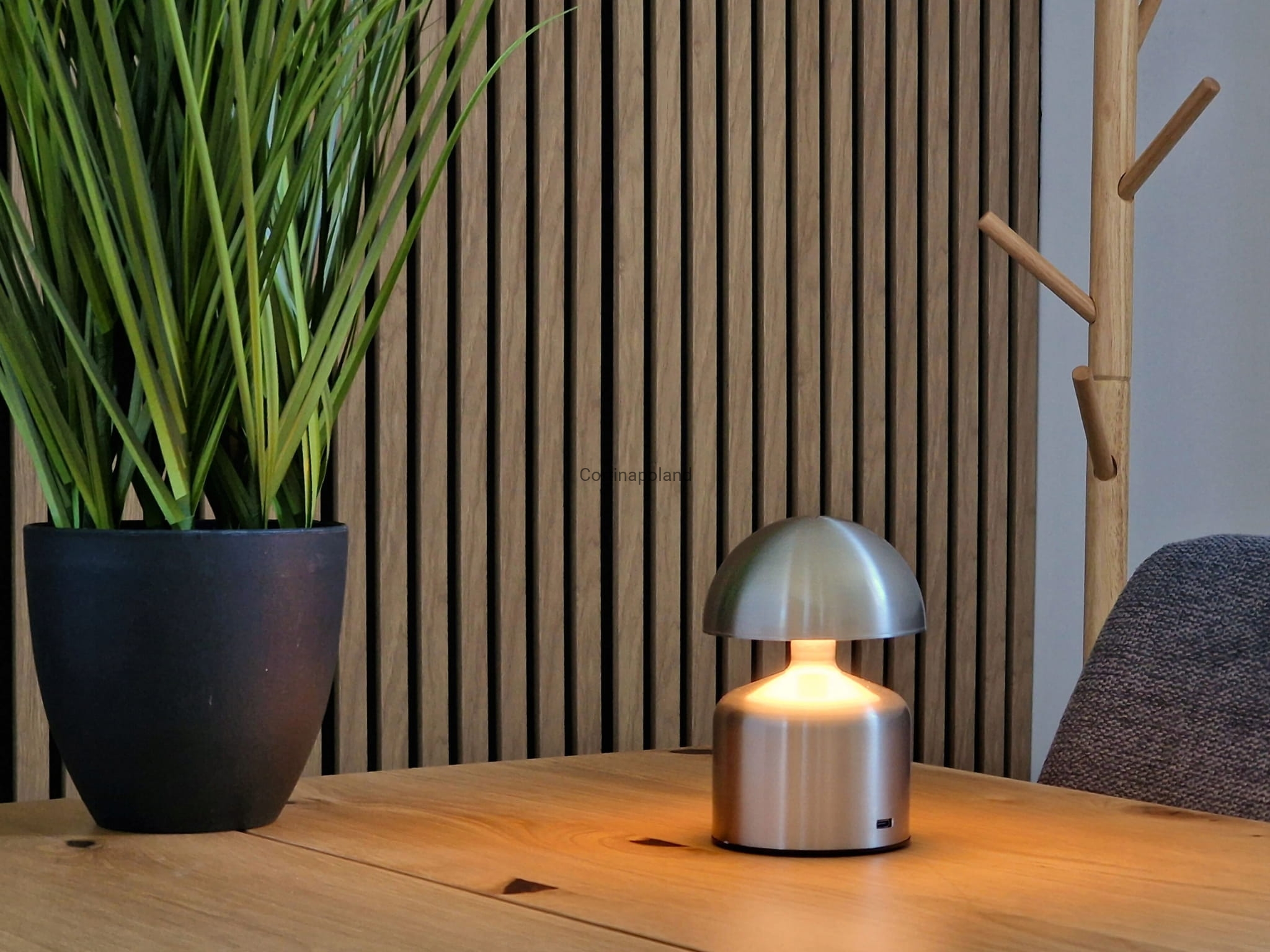 - Port do ładowania estetycznie umieszczony został pod kloszem lampy.