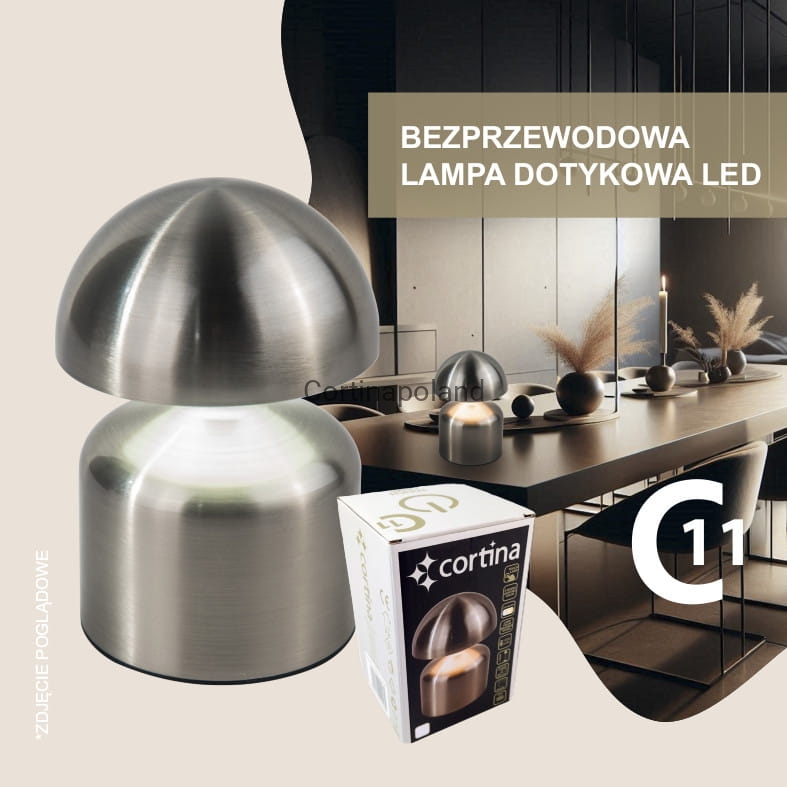 ELEGANCKA DOTYKOWA LAMPA LED W KOLORZE SREBRNYM (Szczotkowany nikiel)