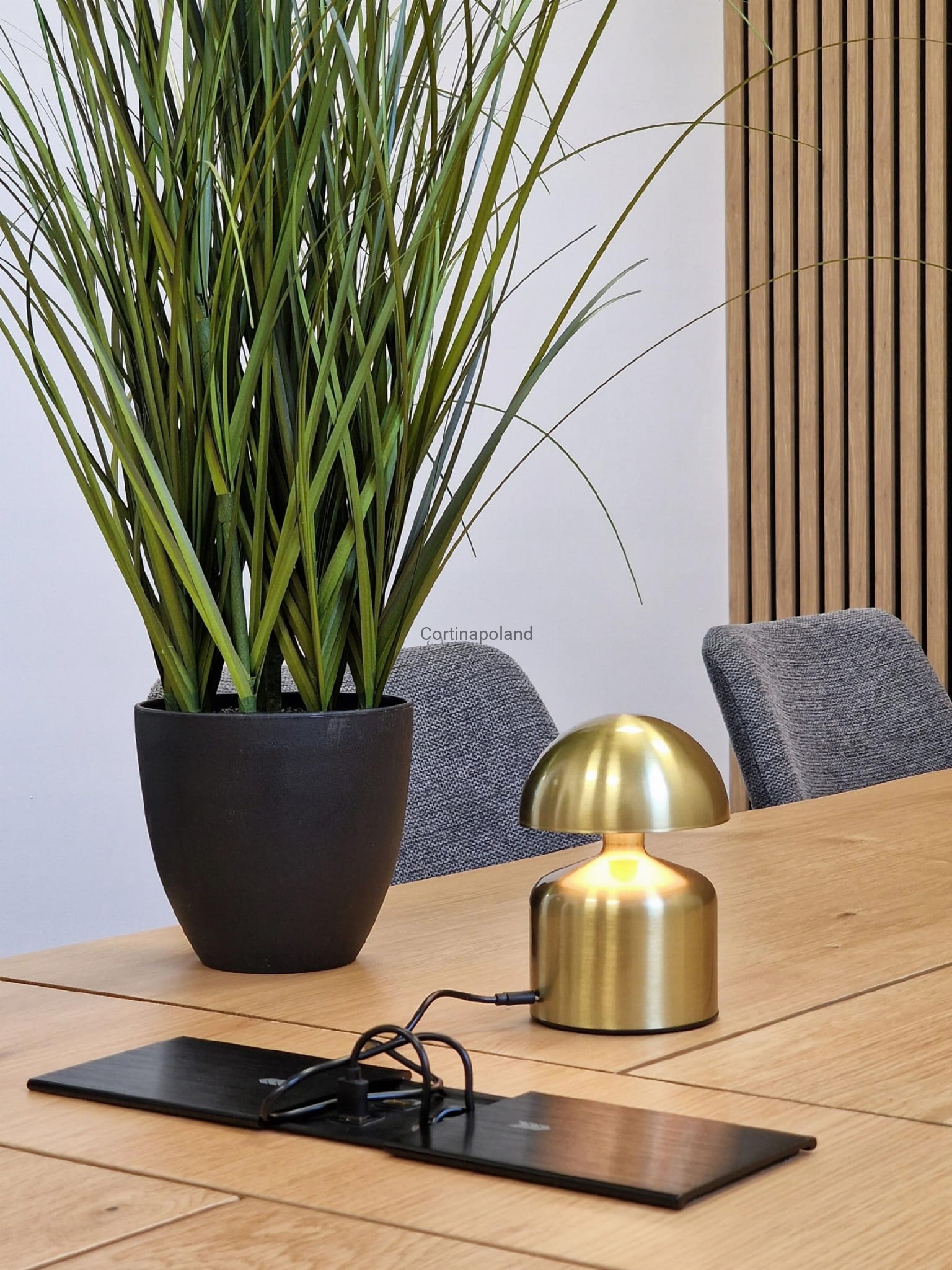 - Port do ładowania estetycznie umieszczony został pod kloszem lampy.