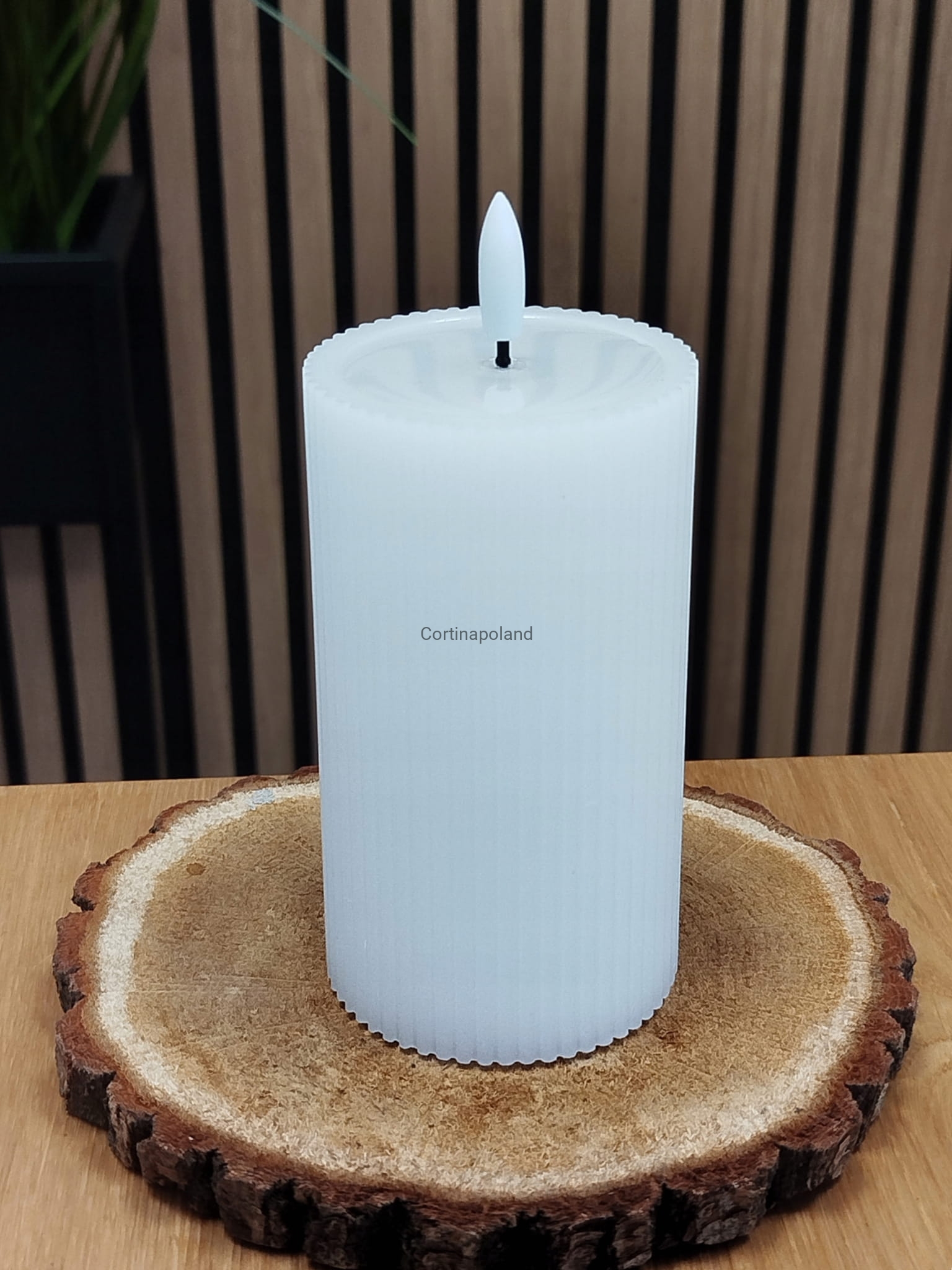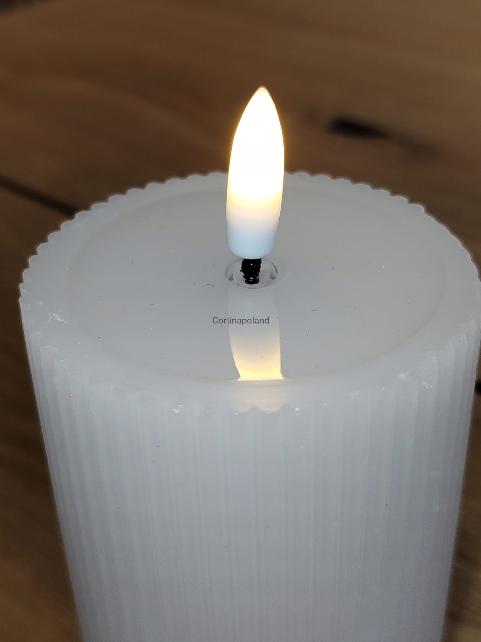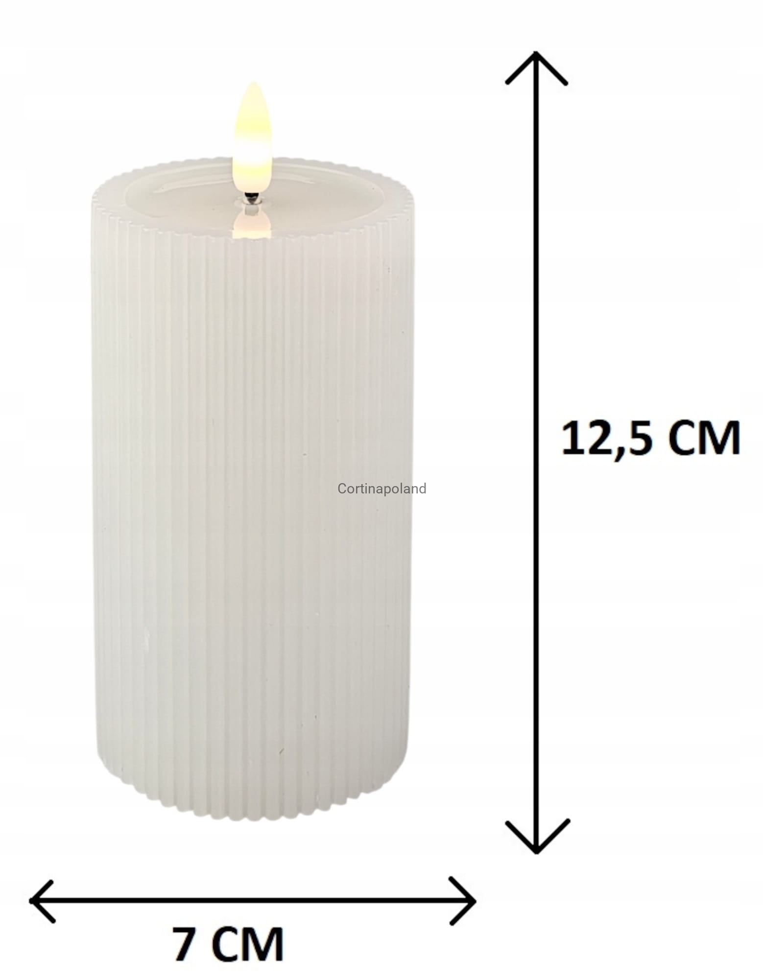 biała świeca woskowa LED karbowana z efektem płomienia na baterie 12,5 cm x 7 cm
