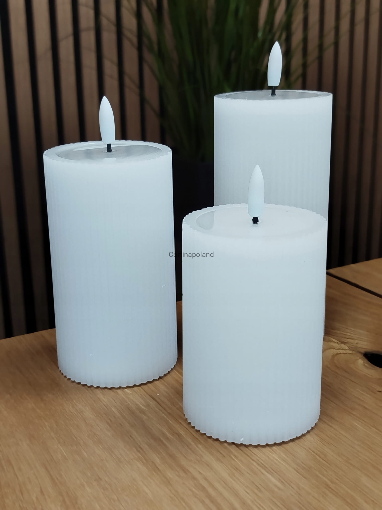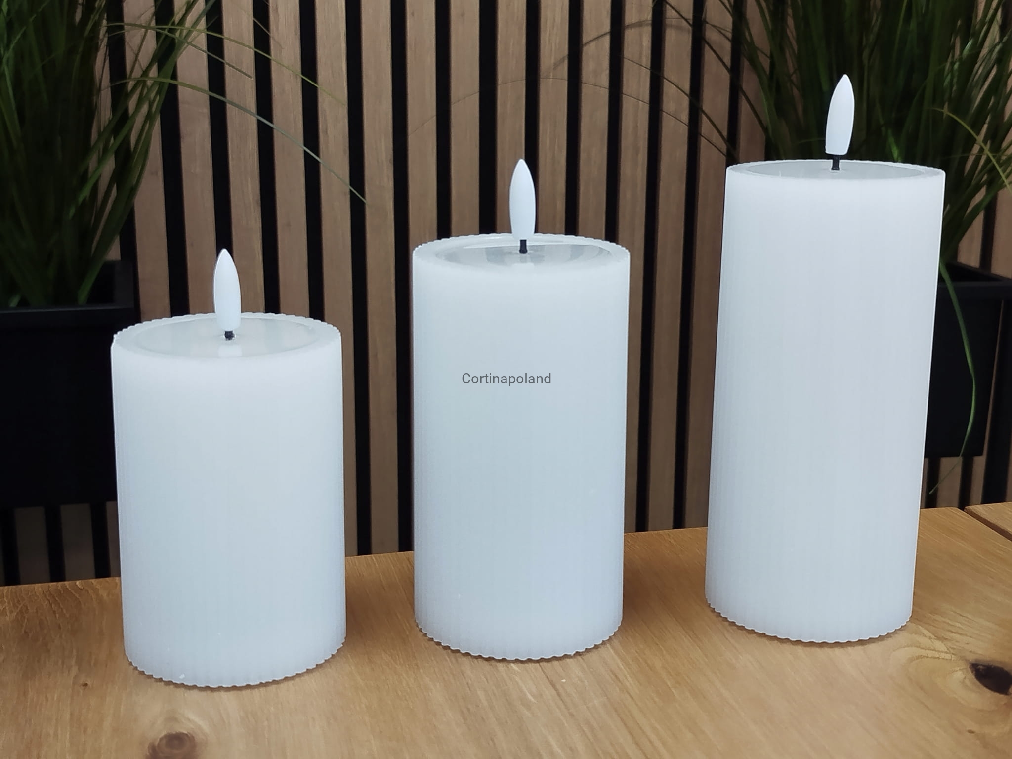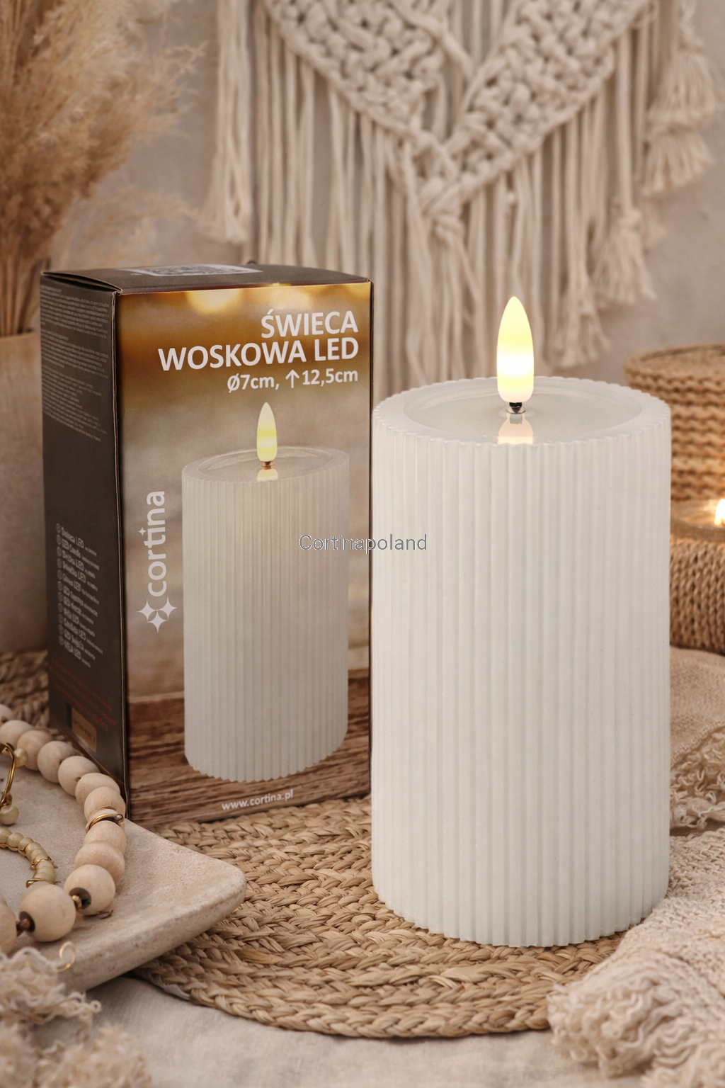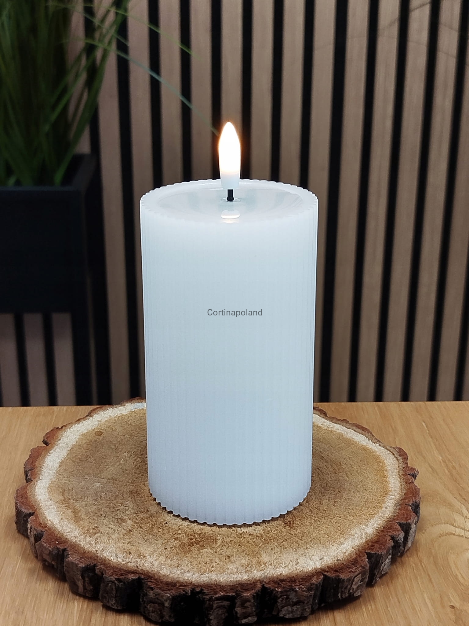 biała świeca woskowa LED karbowana z efektem płomienia na baterie 12,5 cm x 7 cm